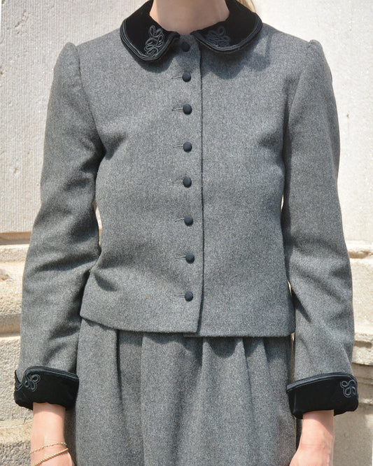 Vintage Gloria Sachs Flannel Wool Velvet-Trimmed Skirt Set