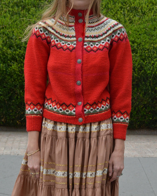 Vintage Norwegian Fair Isle Hand-Knit Wool Cardigan