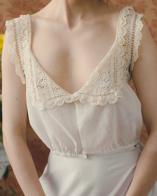 Antique 1880s Victorian Lace-Inset Chemise With Hand-Embroidered Broderie Anglaise