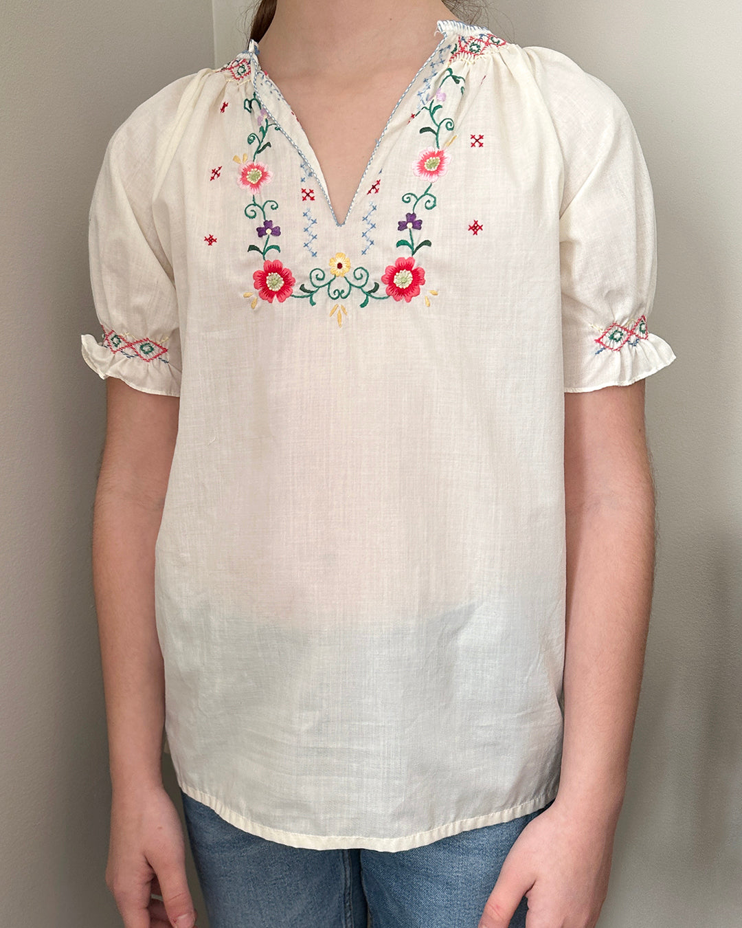 1960s Children's Hand-Embroidered Peasant Blouse