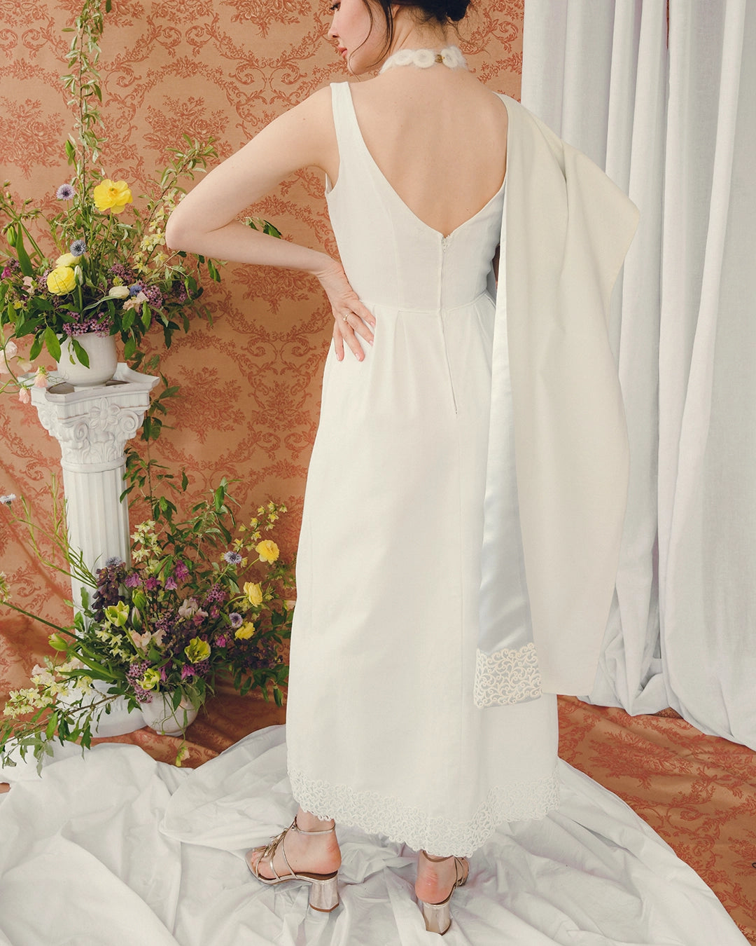 1960s White Pique Column Dress With Matching Shawl