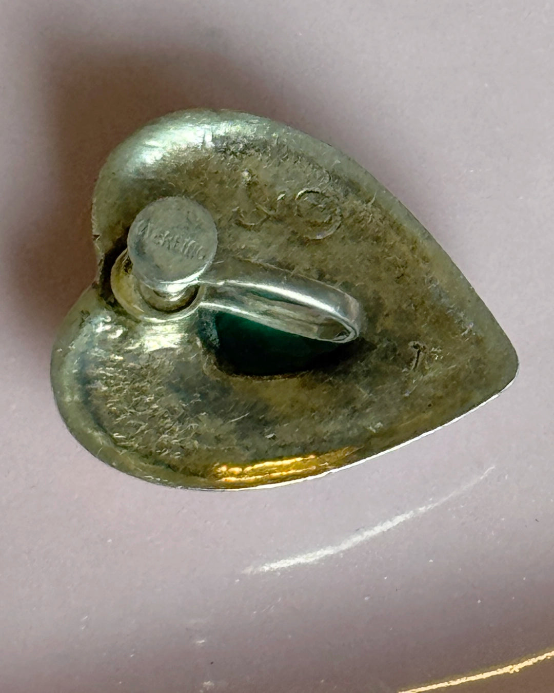 Antique 1920s Art Deco Sterling Silver Heart Earrings with Green Gemstone