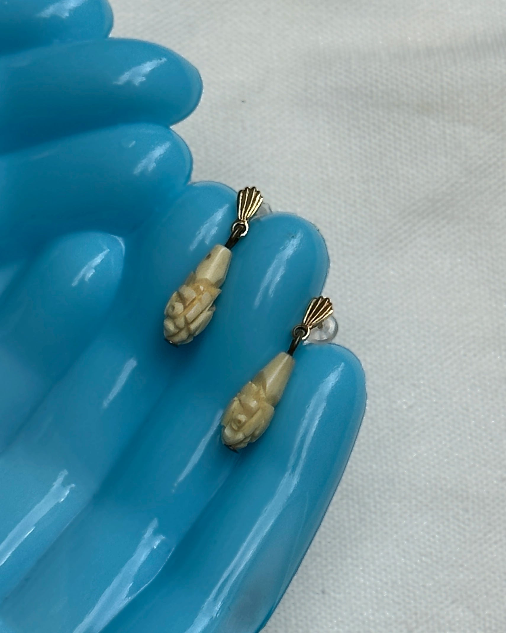 Antique Carved Bone Drop Earrings