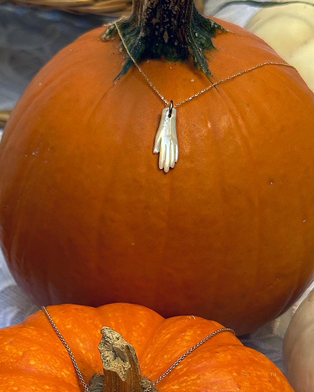 This is such a great dainty layering piece, but the mother of pearl makes an impact on its own. I love mother of pearl for its magical pearlescent quality. In the light, it shines differently at every angle, like an opal; by night, it almost appears to glow in the dark. This diminutive charm dates back to the Victorian era (19th Century). Victorian culture was full of symbolism, turning even the most everyday objects into talismans portending fortune. In the Victorian era, a hand was a symbol of protection, and also denoted friendship. This is a wonderful gift! The total drop is about 7/8". A 14k gold chain which fits the bale quite nicely is also available to include, but you can purchase the pendant on its own if you prefer.