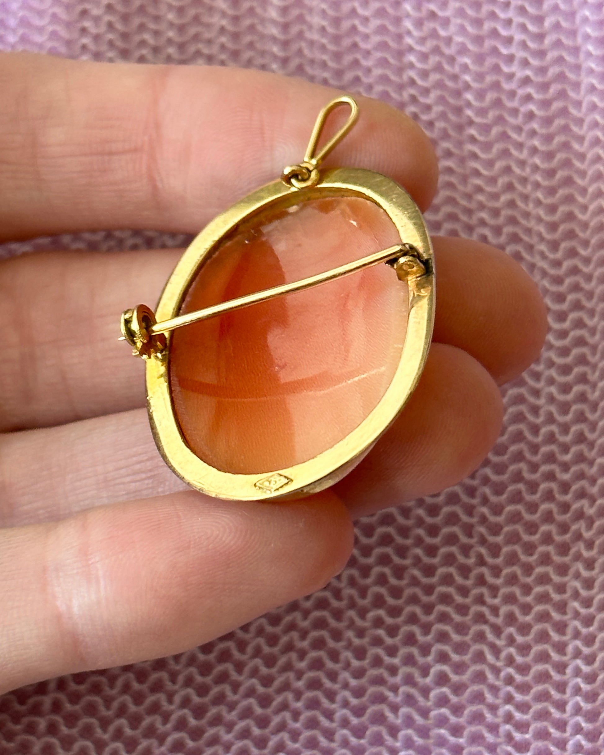 Vintage 18K Gold Carved Shell Cameo Pendant