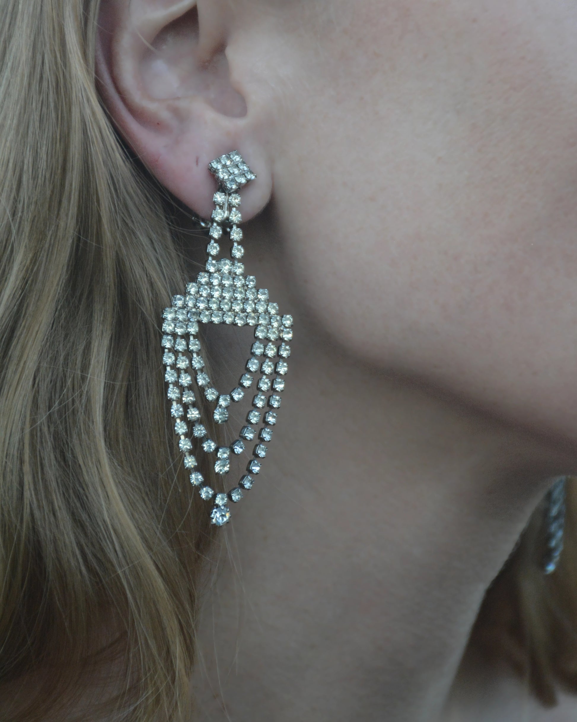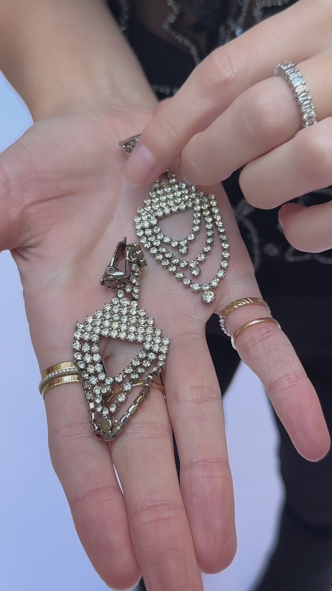 Vintage 1950s Draped Diamanté Chandelier Earrings