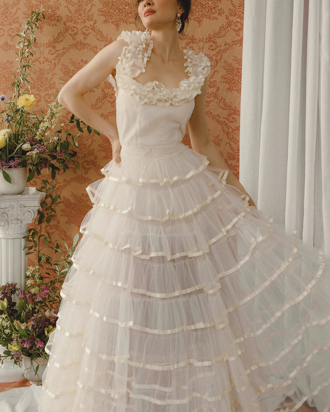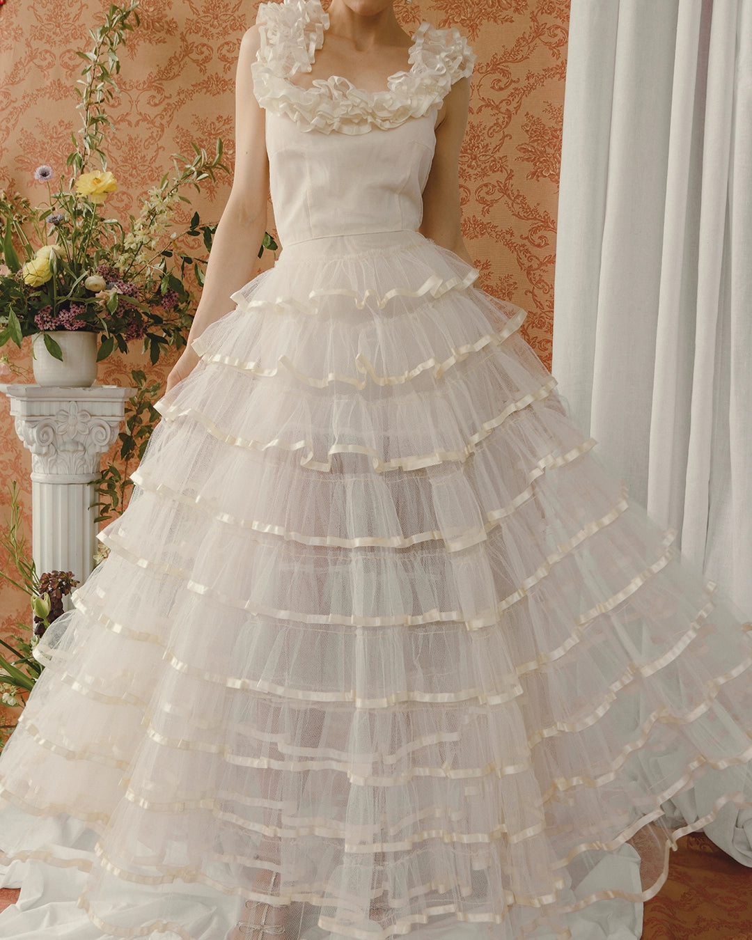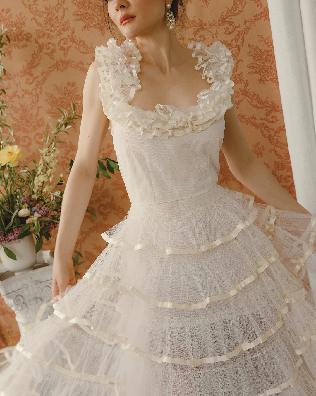 Vintage 1950s Ruffled Tulle Cupcake Gown