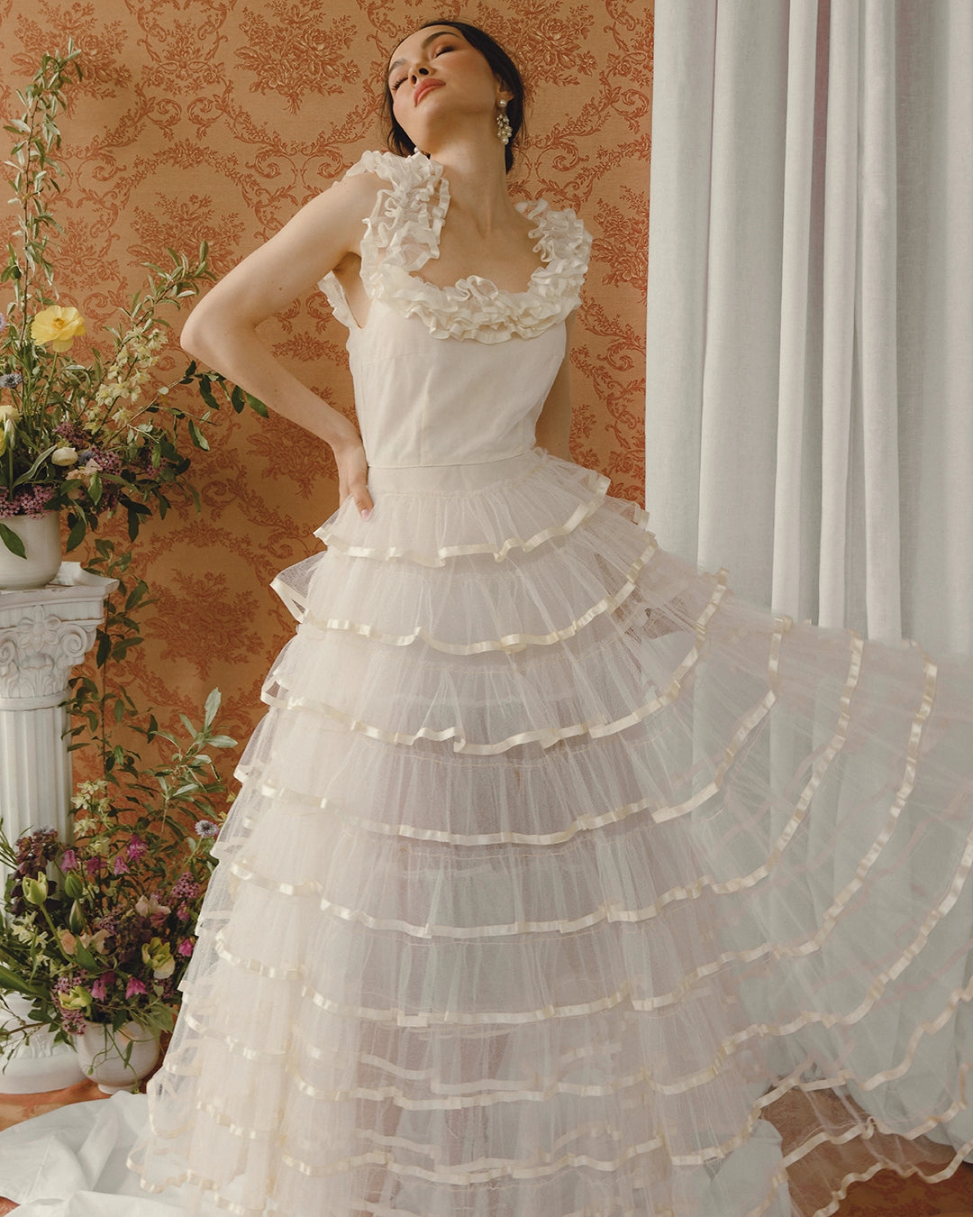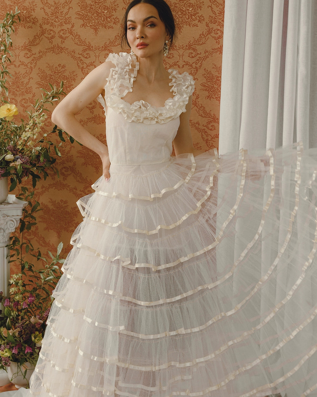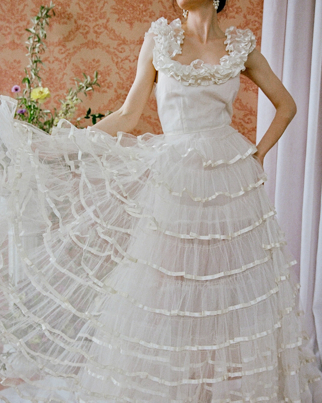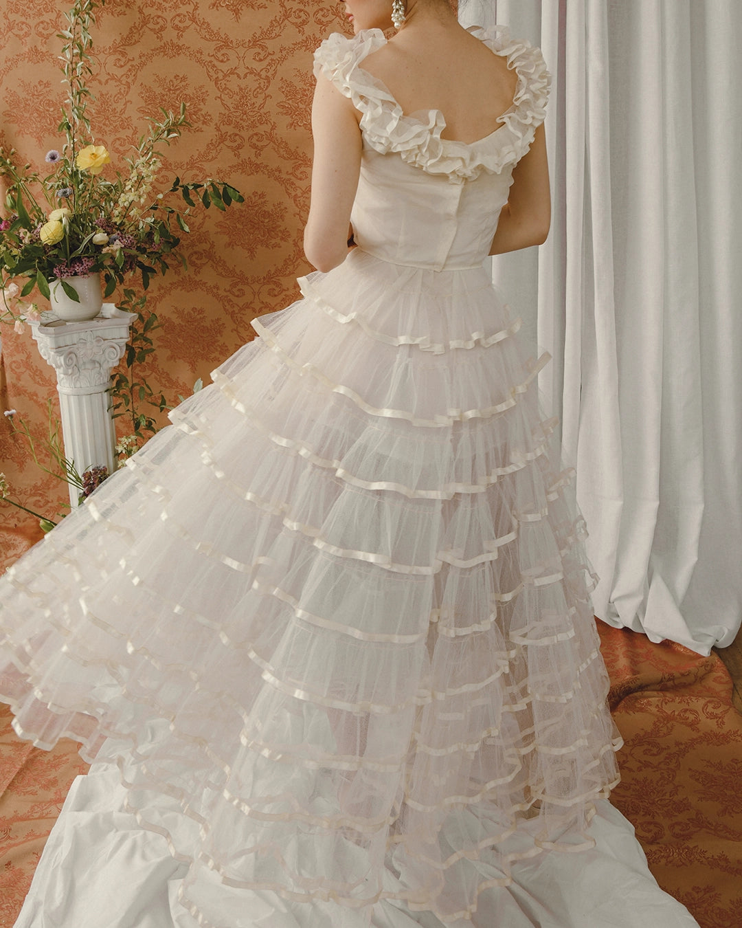 Vintage 1950s Ruffled Tulle Cupcake Gown