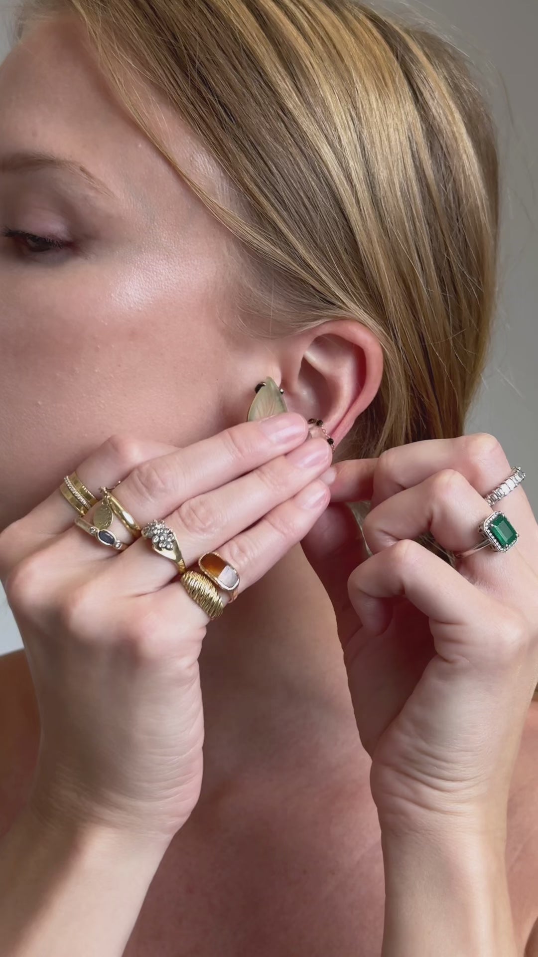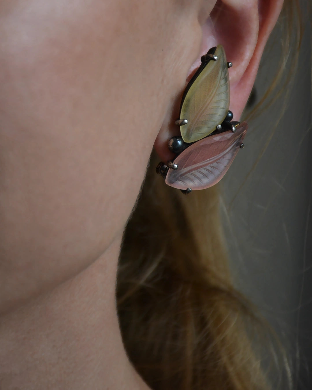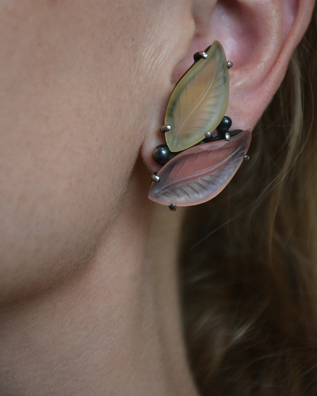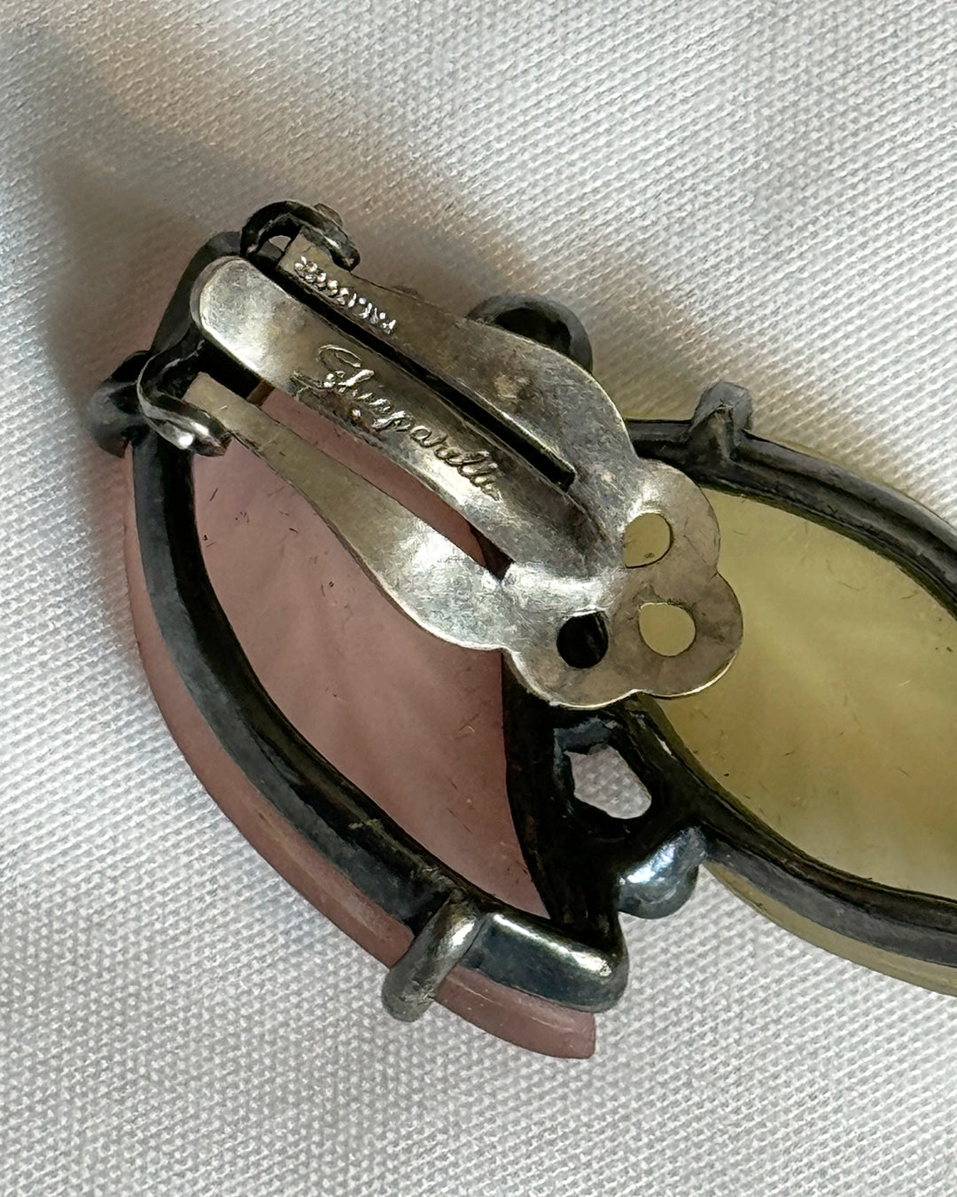 In 1927, Elsa Schiaparelli showed her first collection, encouraged by her closes relationship with infamous couturier Paul Poiret. Schiaparelli was remarkable not just for forming her own couture house in a time it was incredibly rare for a woman to do so, but for breaking the mold of her contemporaries and focusing on whimsical, feminine styles. She was notably influenced by the Surrealist movement (she worked closely with Salvador Dali) and these earrings are a premiere example of her surreal, avant-garde tastes