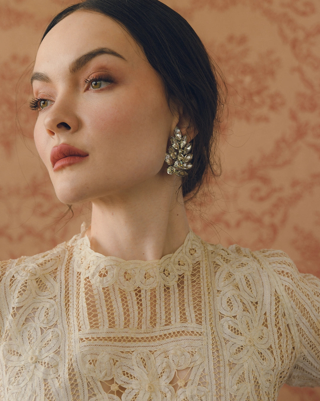 These vintage 1950s diamanté statement earrings crawl up the ear in a botanical motif. They're just dripping with that Old Hollywood Glamour that elevates any look. The classic crystal make them a perfect "Something Old" for a bride— one that will be worn for years to come. They are finished with a clip-on lever back, and are exceptionally lightweight and comfortable. Vintage clip-ons are so much more comfortable and secure to wear compared to their modern counterparts, largely due to the quality and thought that went into their hand-made construction. They measure about 5 cm total length.