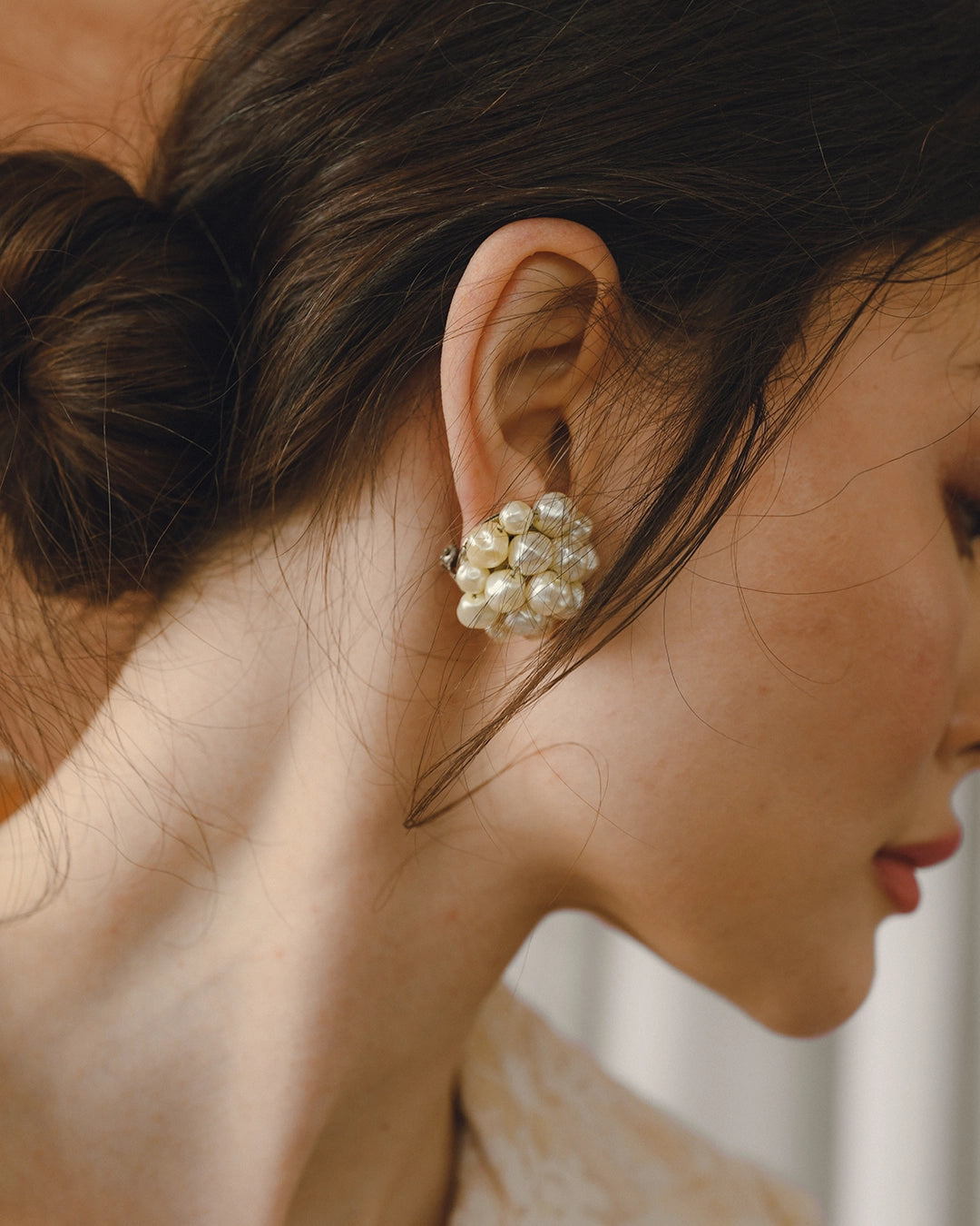 Vintage 1960s Baroque Pearl Cluster Earrings
