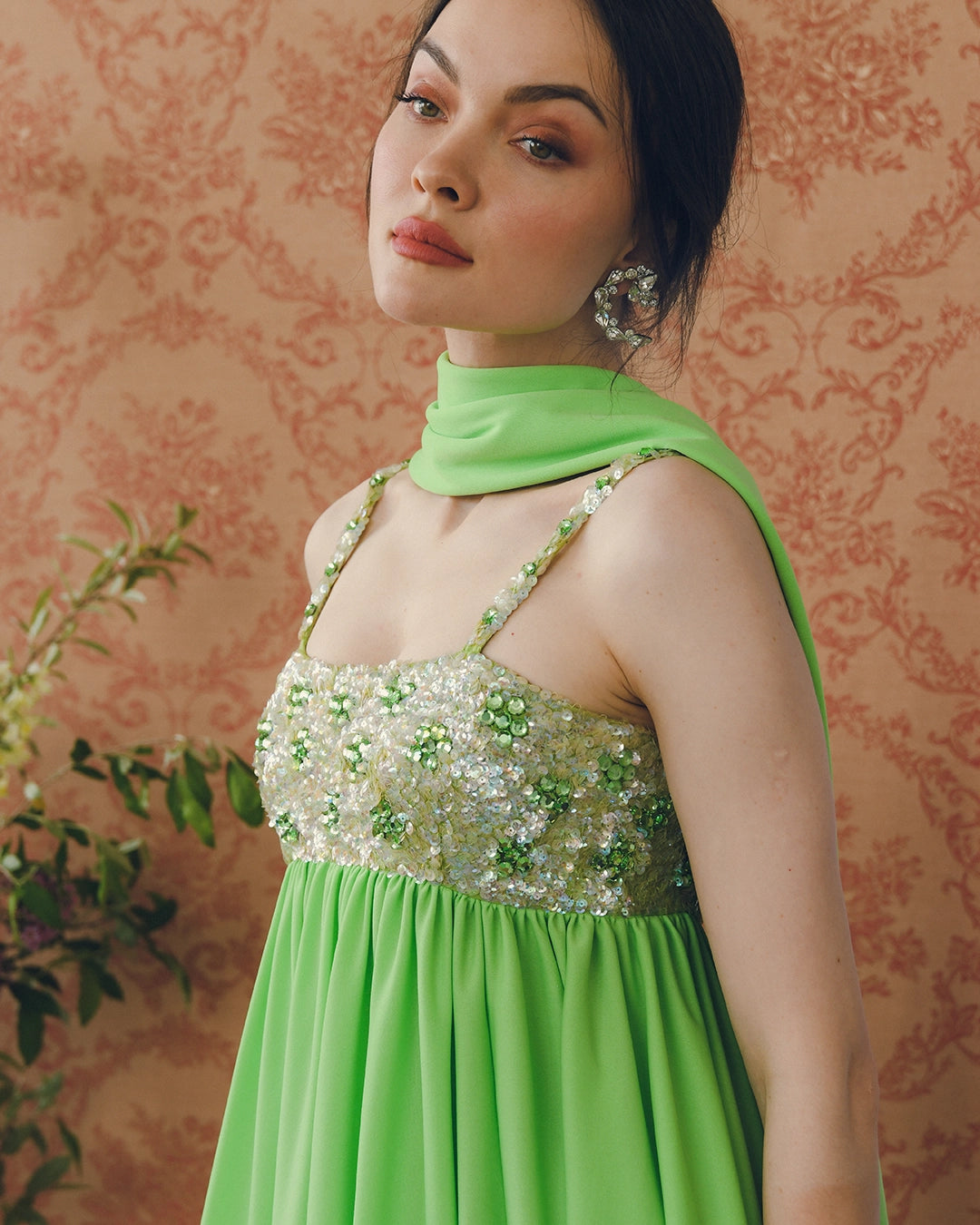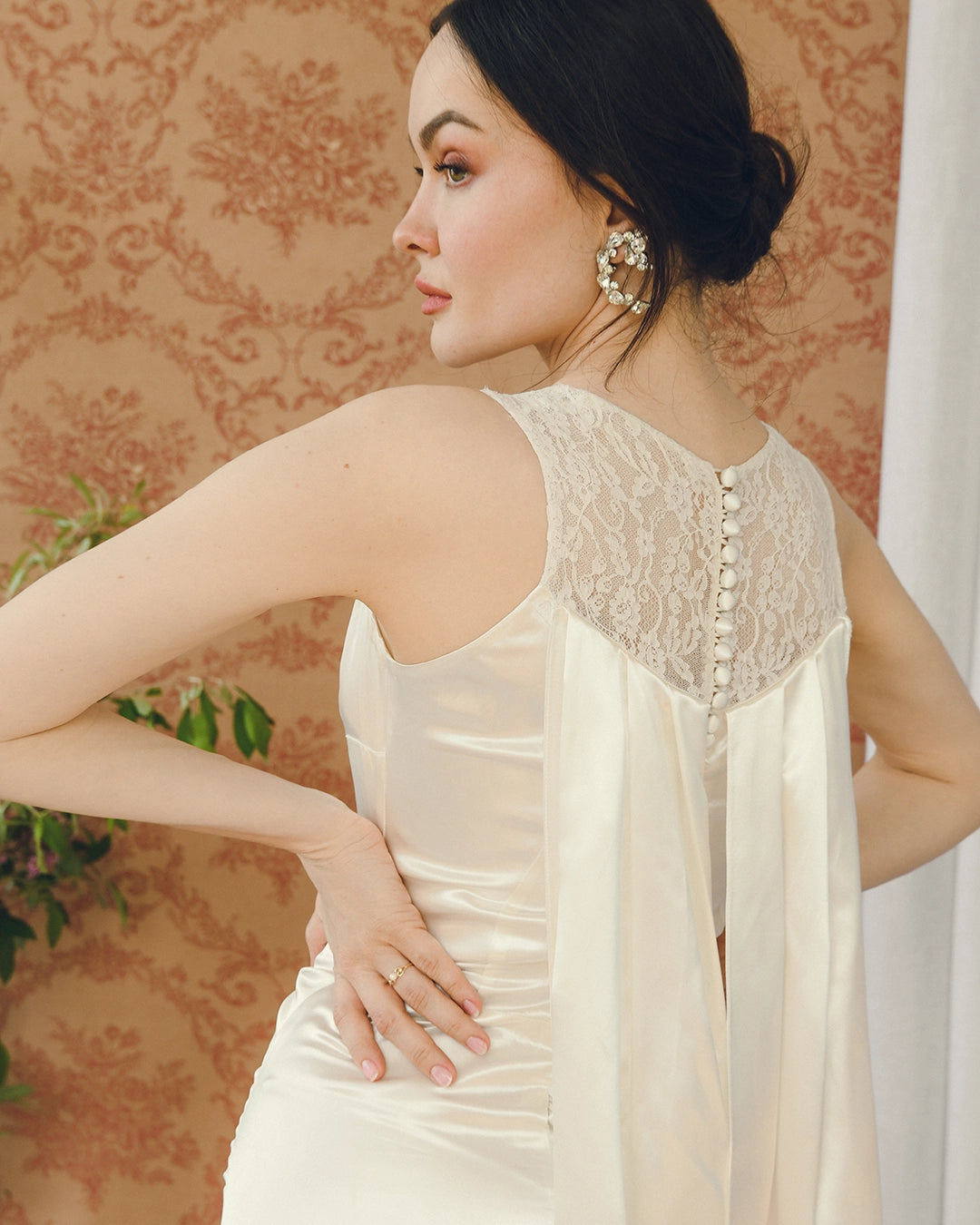 The Vintage Lillie Rubin Empire Waist Embellished Gown and Vintage Charmeuse Bridal Gown with Watteau Cape Back pictured are also available.