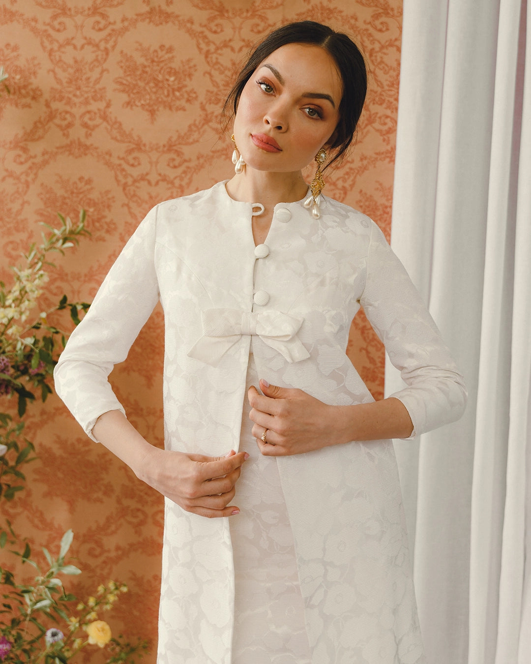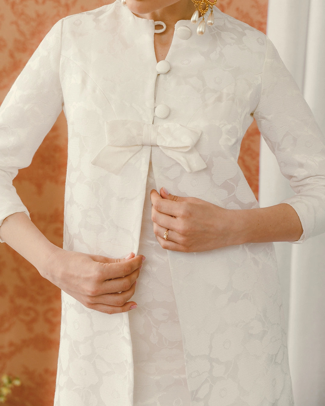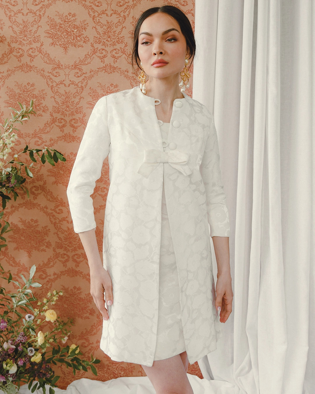 Vintage 1960s Ivory Brocade Dress + Coat Set