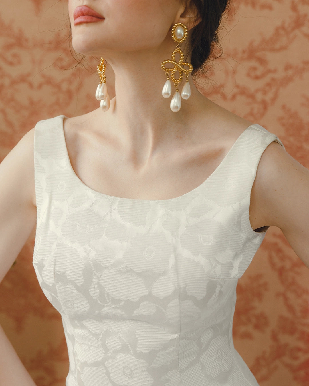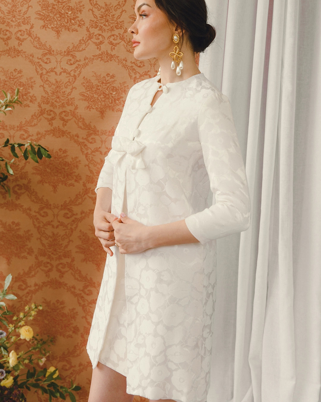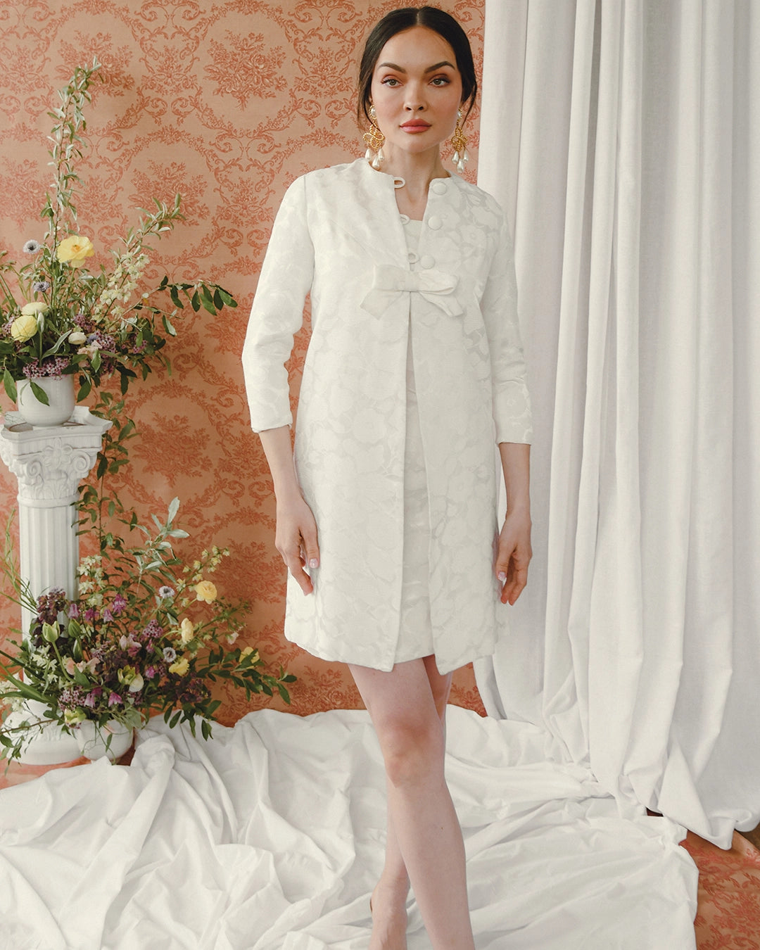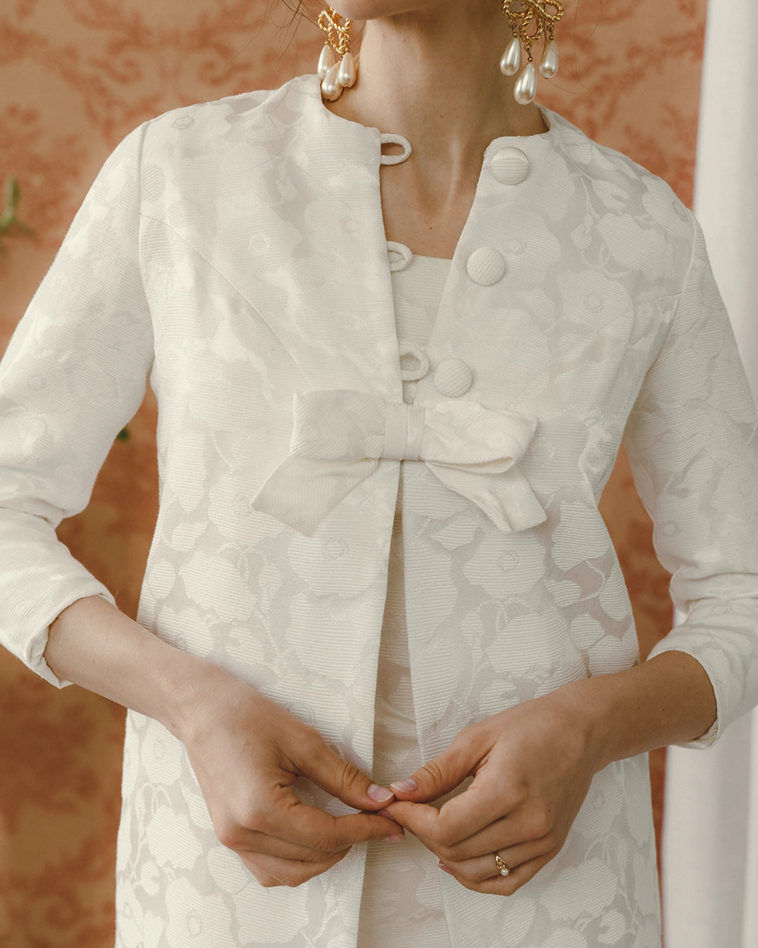 Vintage 1960s Ivory Brocade Dress + Coat Set