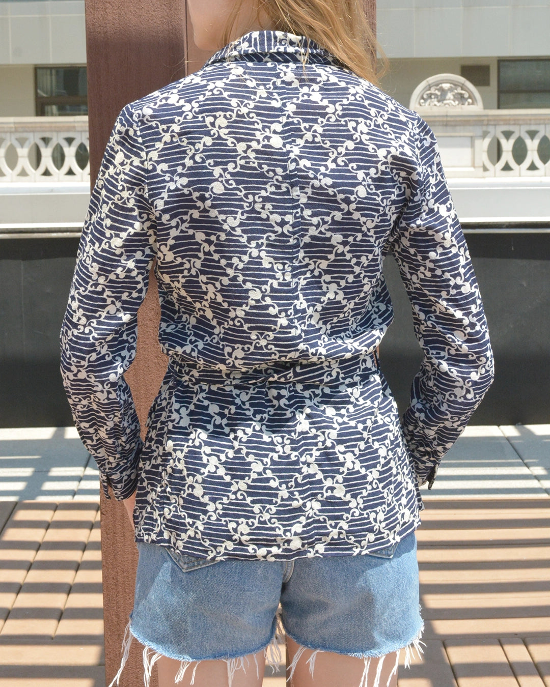 This vintage 1960s mod belted tunic looks like something Brigitte Bardot or Jane Birkin would have been seen wearing while running around the French Riviera in the 1960s. I absolutely adore this unique mod print, in navy blue and taupe. It was made in France in the early 1960s by a French brand based in Paris and Nice, and it most definitely exudes that quintessential French-girl style. The fabric has an almost heavy-crepe texture and is so beautiful. The princess seams keep it fitted throughout, and the silhouette combined with the longer length is super flattering. It is belted at the waist (there are belt loops) and has two flap pockets in the front.