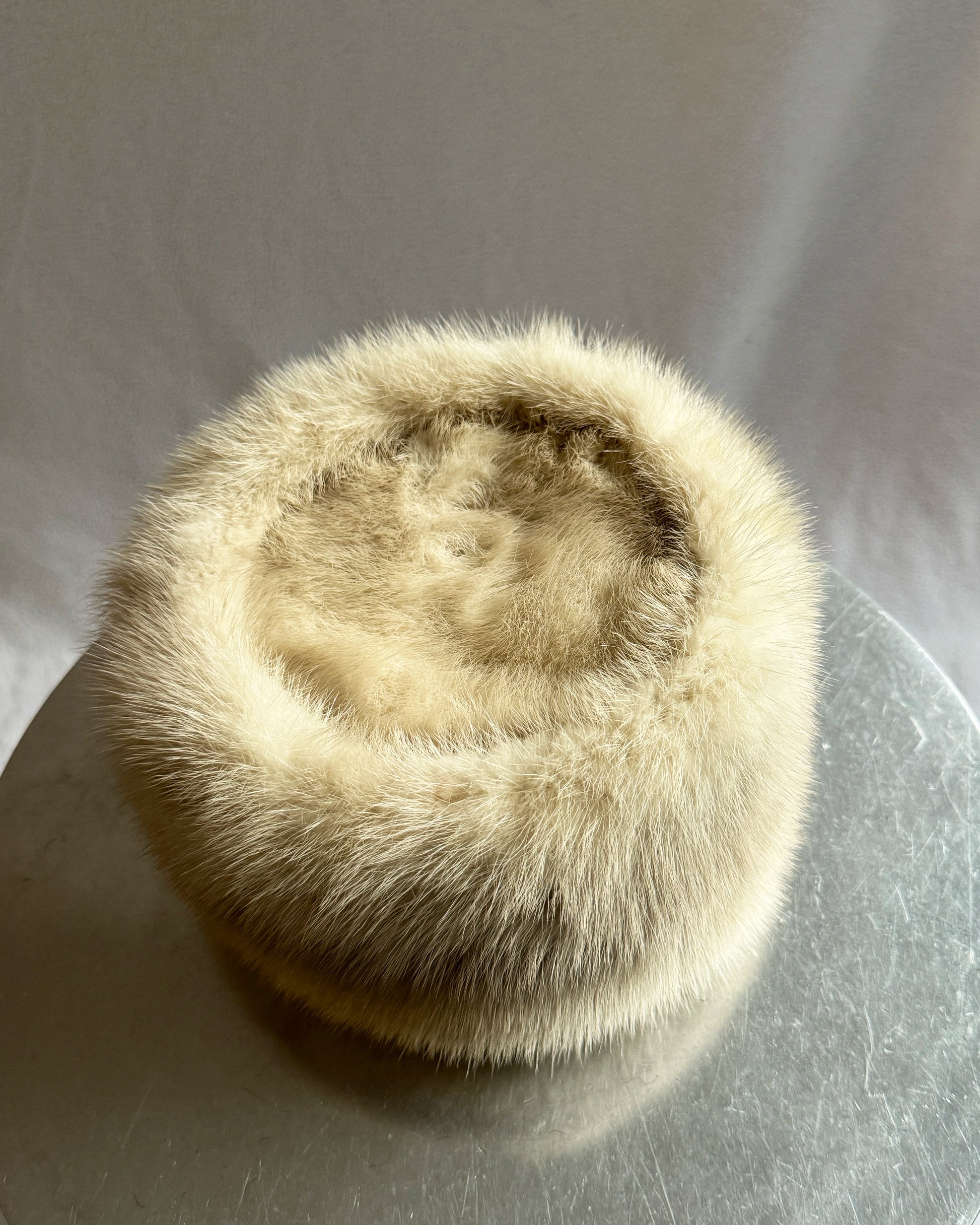 Great vintage condition, with some minor discoloration to grosgrain band, but it is not visible when worn and the fur presents beautfully. With any questions about the specific condition or size, please email shop@verybreezy.com for additional photos or measurements, as all sales are final.