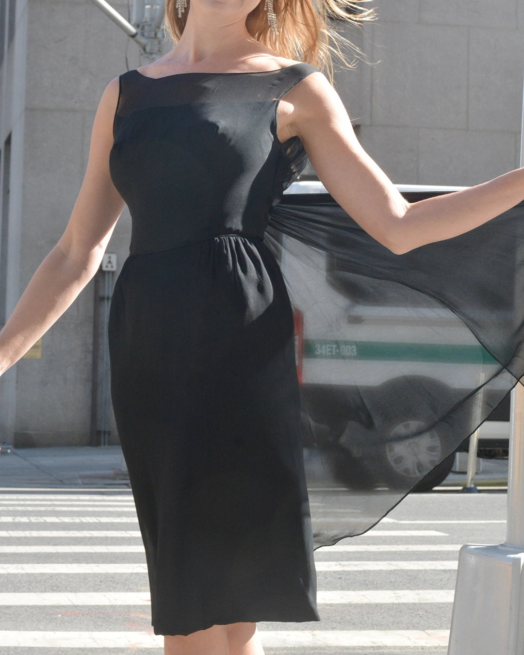 Vintage 1960s Silk Chiffon Waterfall Cape Back Cocktail Dress