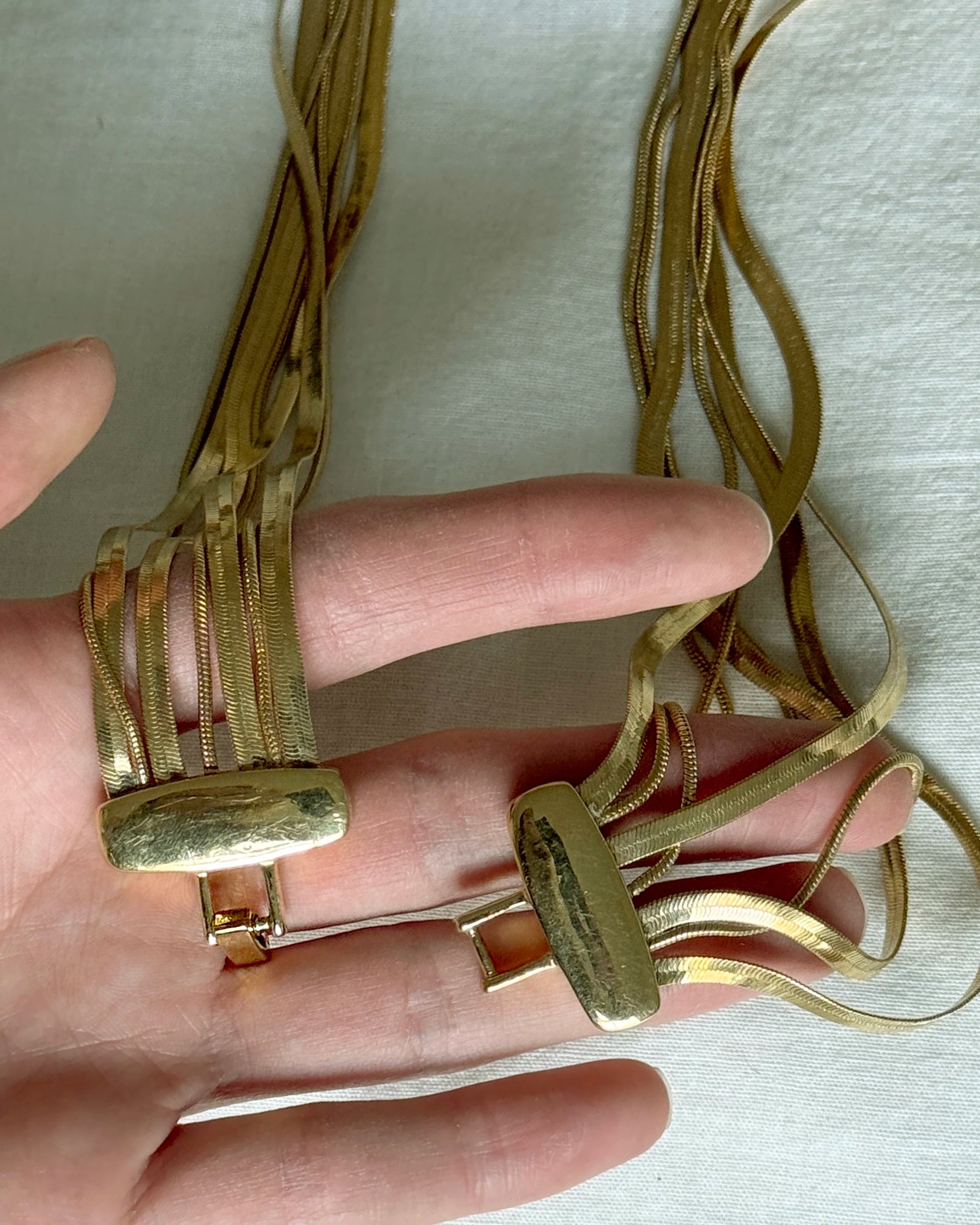 Vintage 1970s Multi-Strand Gold Omega Chain Necklace