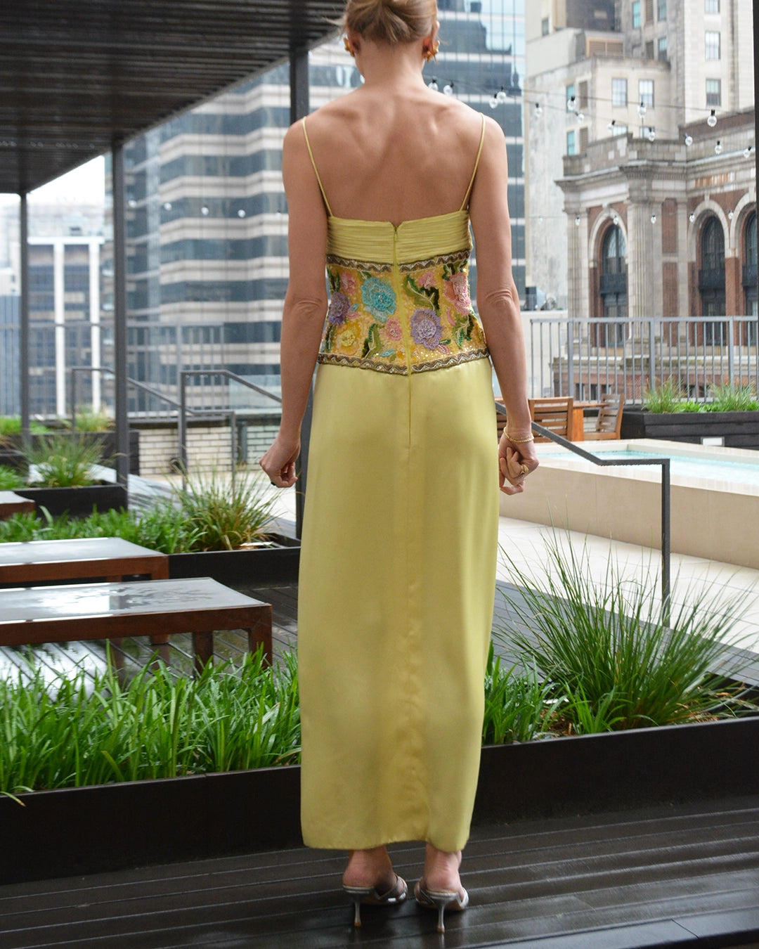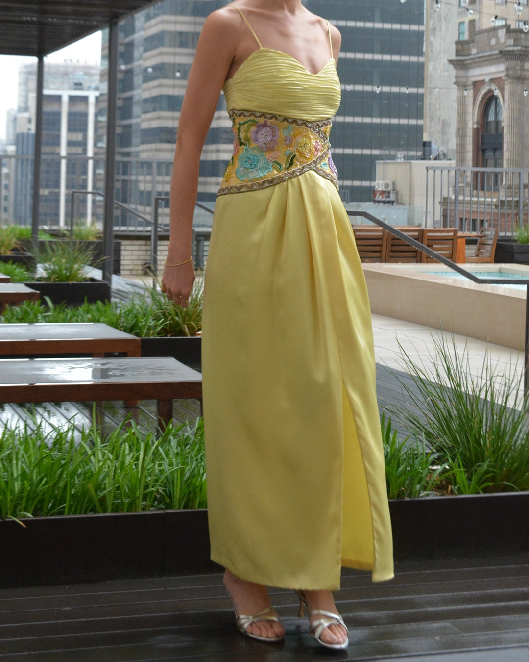 Vintage 1980s Mary McFadden Silk Column Gown with Beaded Bodice (Attributed)