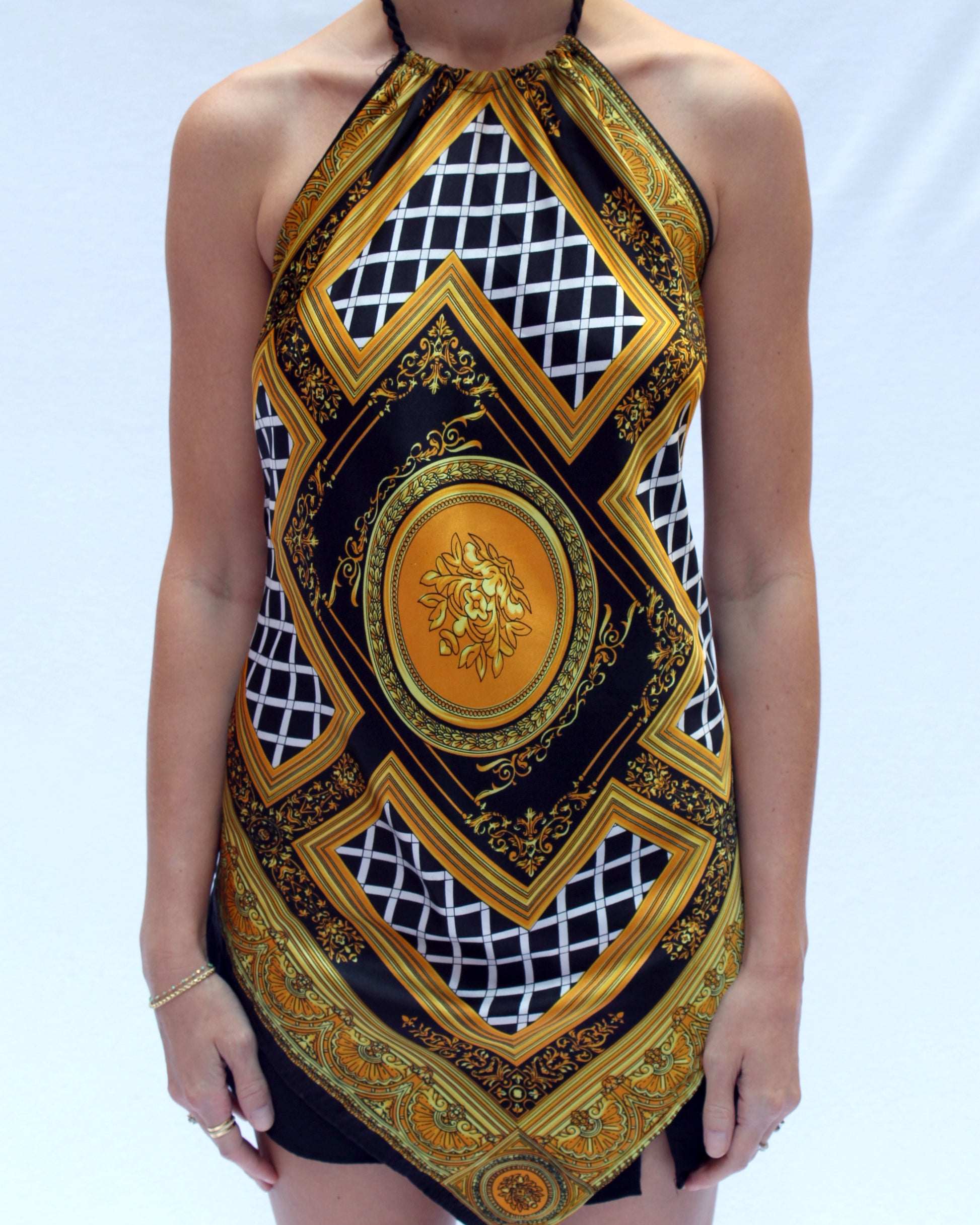 Vintage 90s Handkerchief Halter Top, in the style of Versace