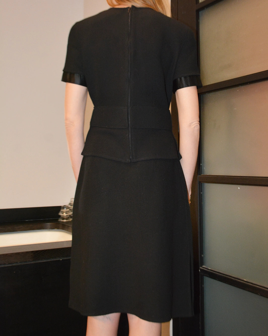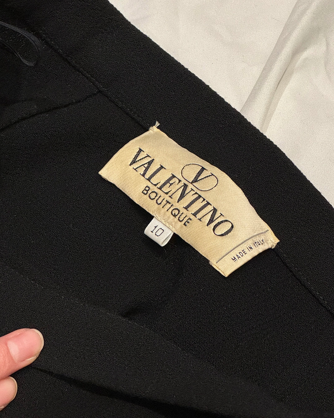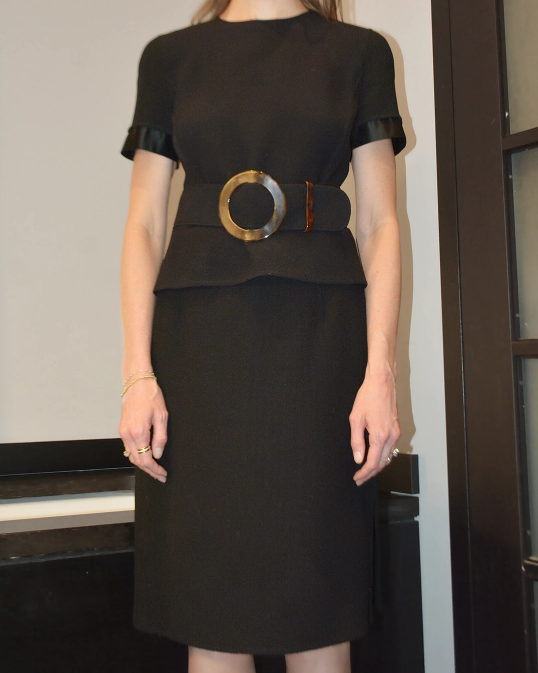 Made in the 90s, this vintage Valentino is crafted from superfine lightweight wool with a beautiful stretch, and silk-trim. The top has an attached-belted waist, with an oversized tortoiseshell buckle. There is a misconception that wool is hot/for cold weather only, but since it is a natural fiber, it is extremely breathable, and certain types of wool like this can be great for warmer weather. It also is unlined to maintain that breathability and lightweight feel. Though they almost give the look of a dress when worn together, I love that these pieces can be mixed and worn separately as well, giving so many styling possibilities in one set. (Imagine the top with jeans! So chic!) The top has light shoulder pads, with the cinched belted waist, silk trim at the sleeves, and a hidden zipper down the back. The skirt features slits up both sides for ease of movement, and closes with a side zipper. It could also be hemmed shorter if you wish! Made in Italy of 100% wool with 100% silk details.