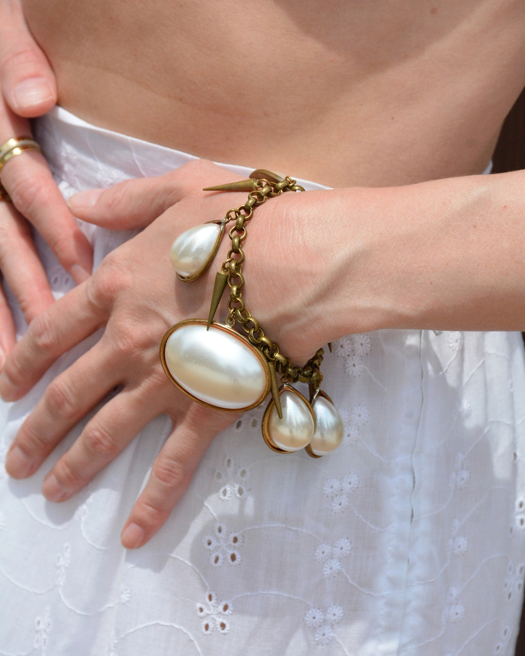 Vintage Chunky Pearl Charm Bracelet