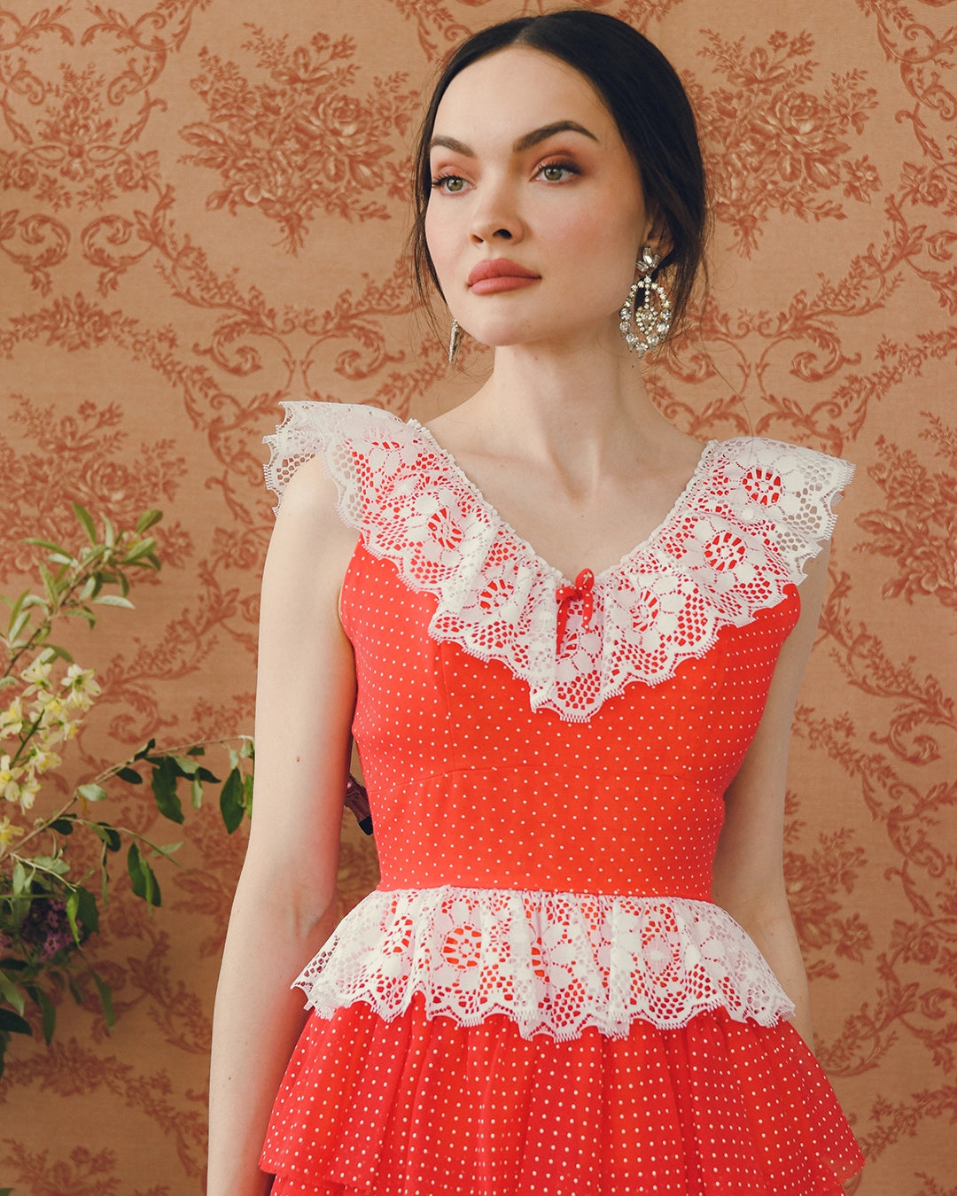 The Vintage Organza Swiss Dot and Lace Gown with tiered Petticoat Skirt pictured is also available.