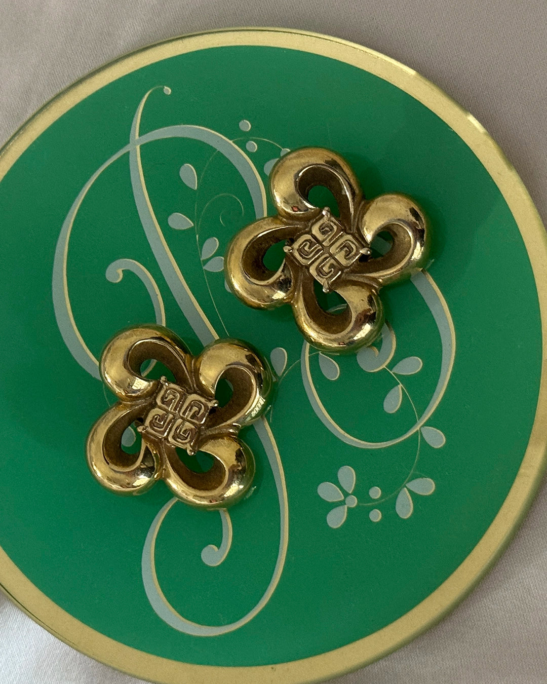 Vintage Givenchy Gold Logo Bow Earrings