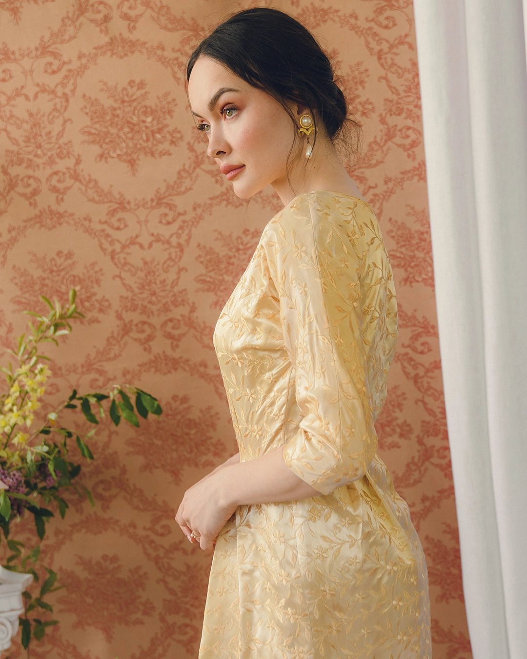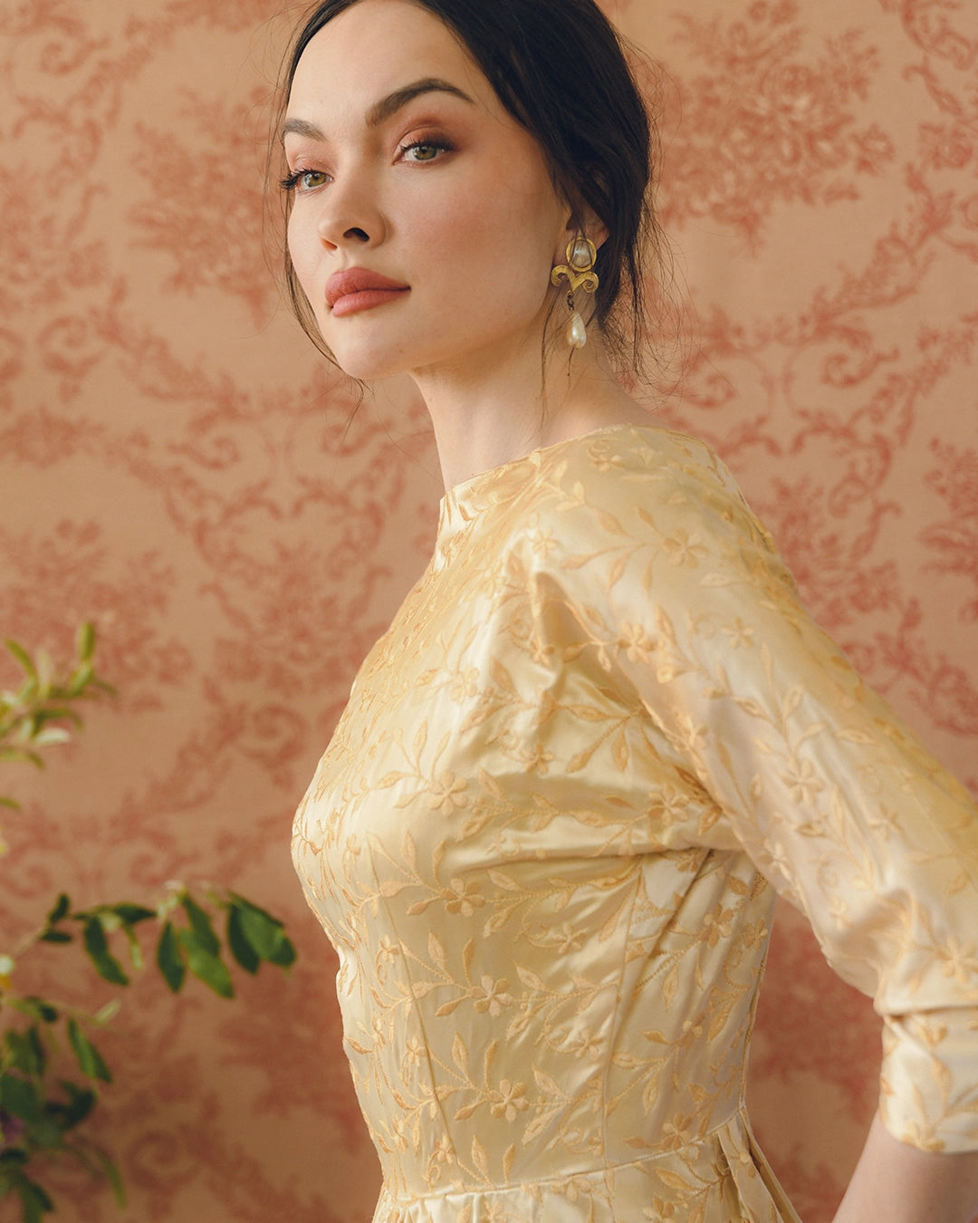 The Vintage 1940s Embroidered Duchesse Satin Dolman Sleeve Dress pictured is also available.