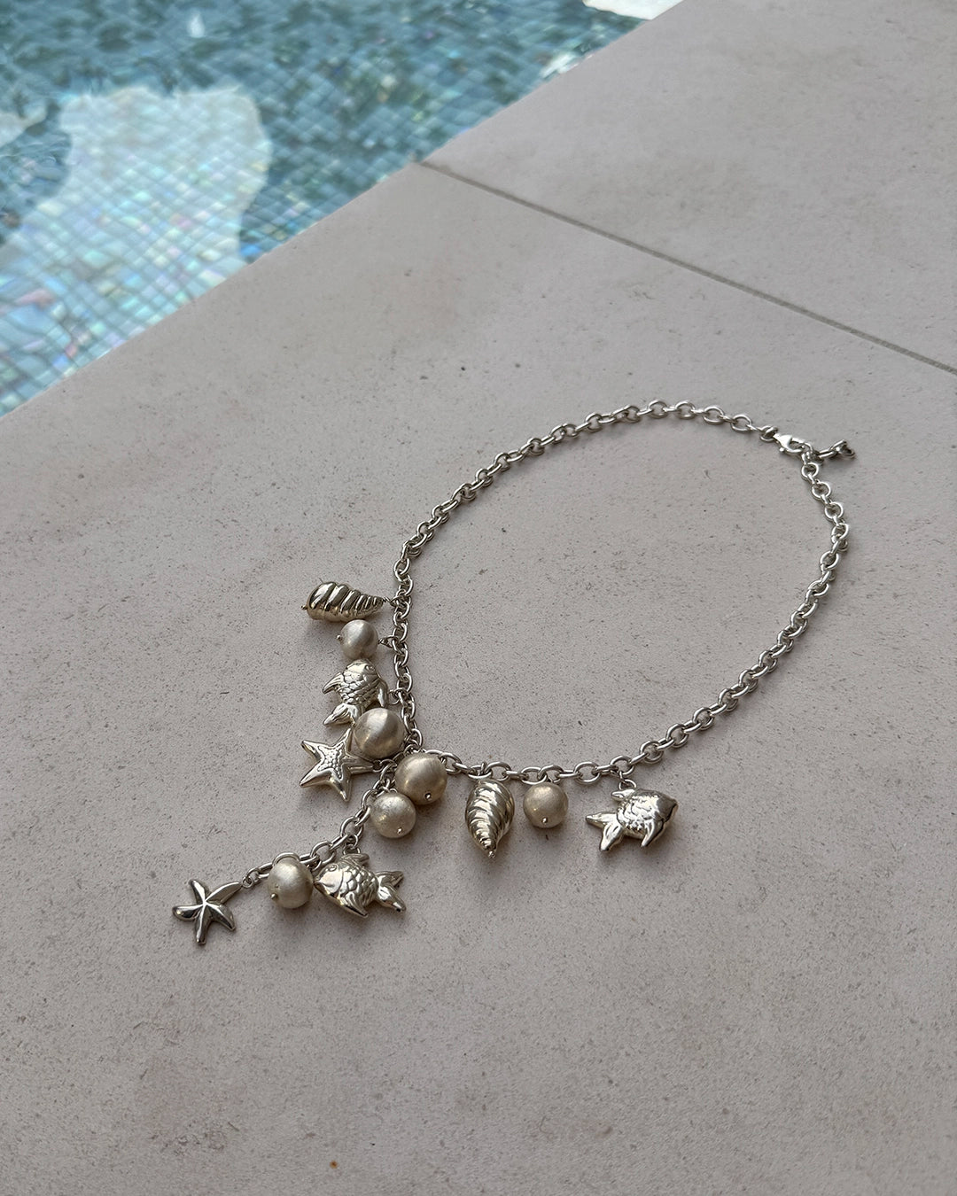 Vintage Italian Sterling Silver Sealife Lariat Charm Necklace