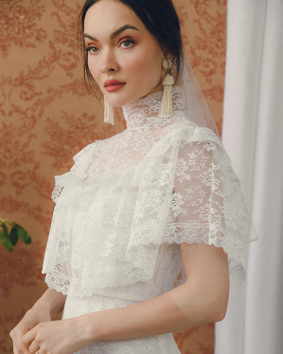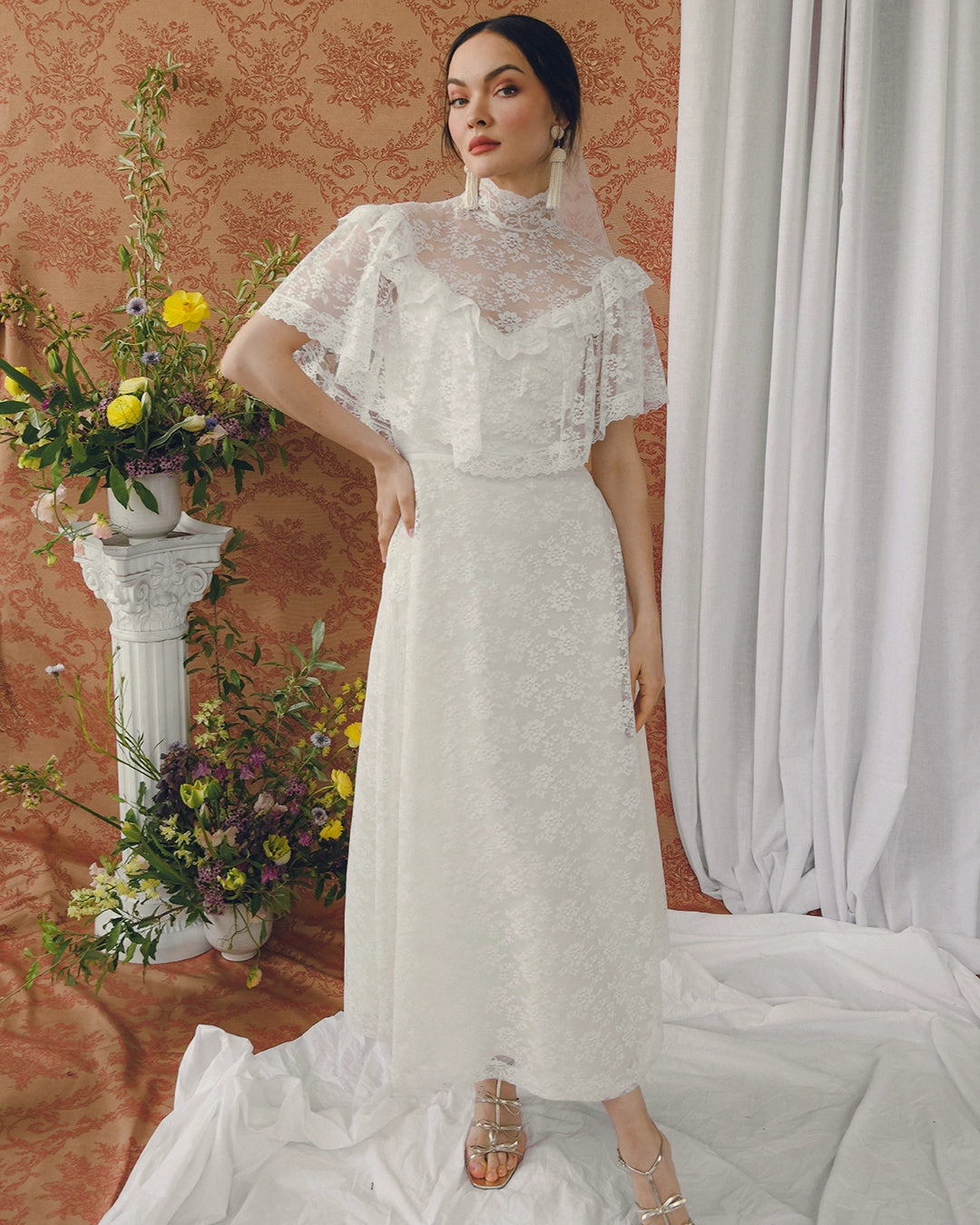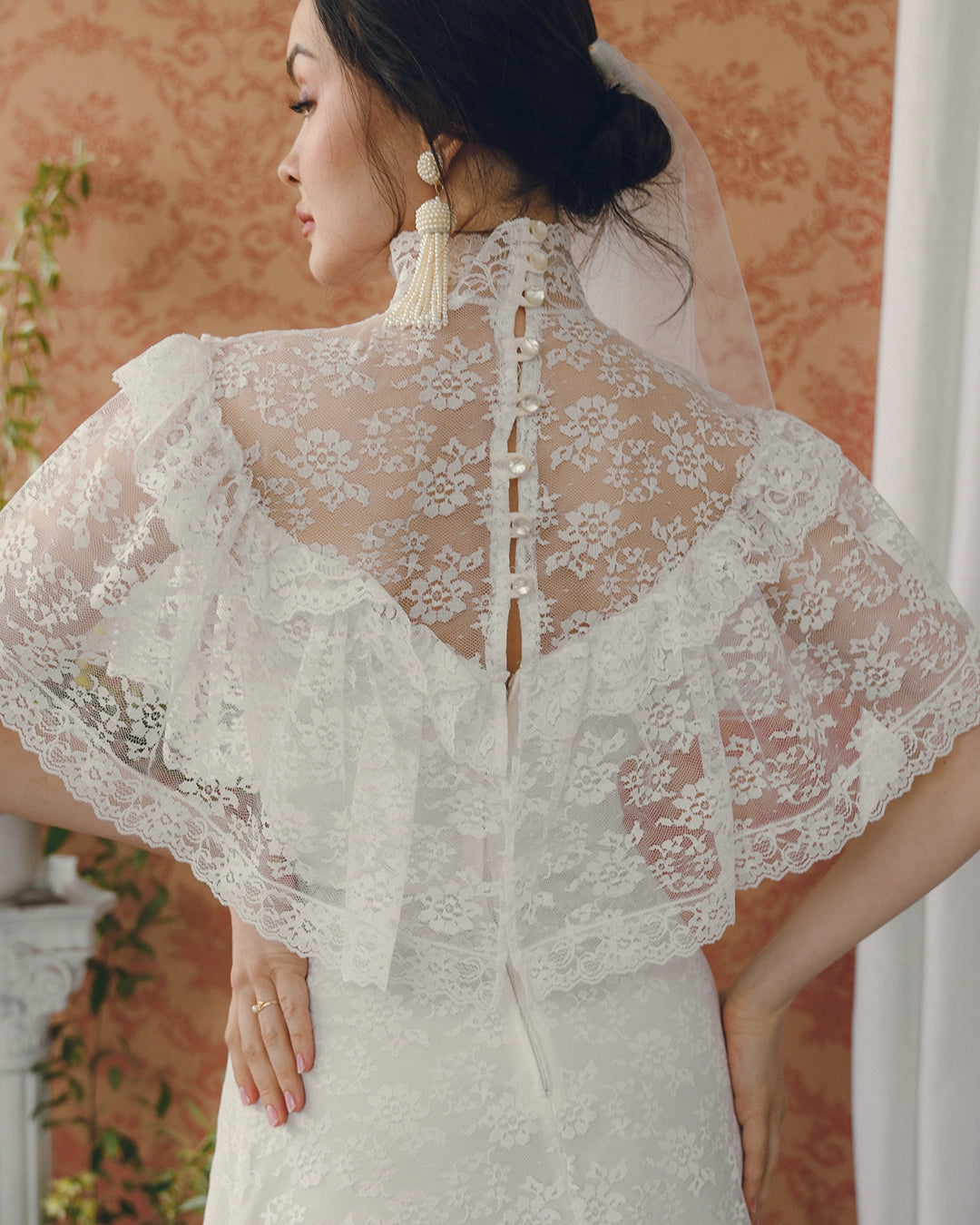 Vintage Ivory Lace High-Neck Dress With Cape Collar