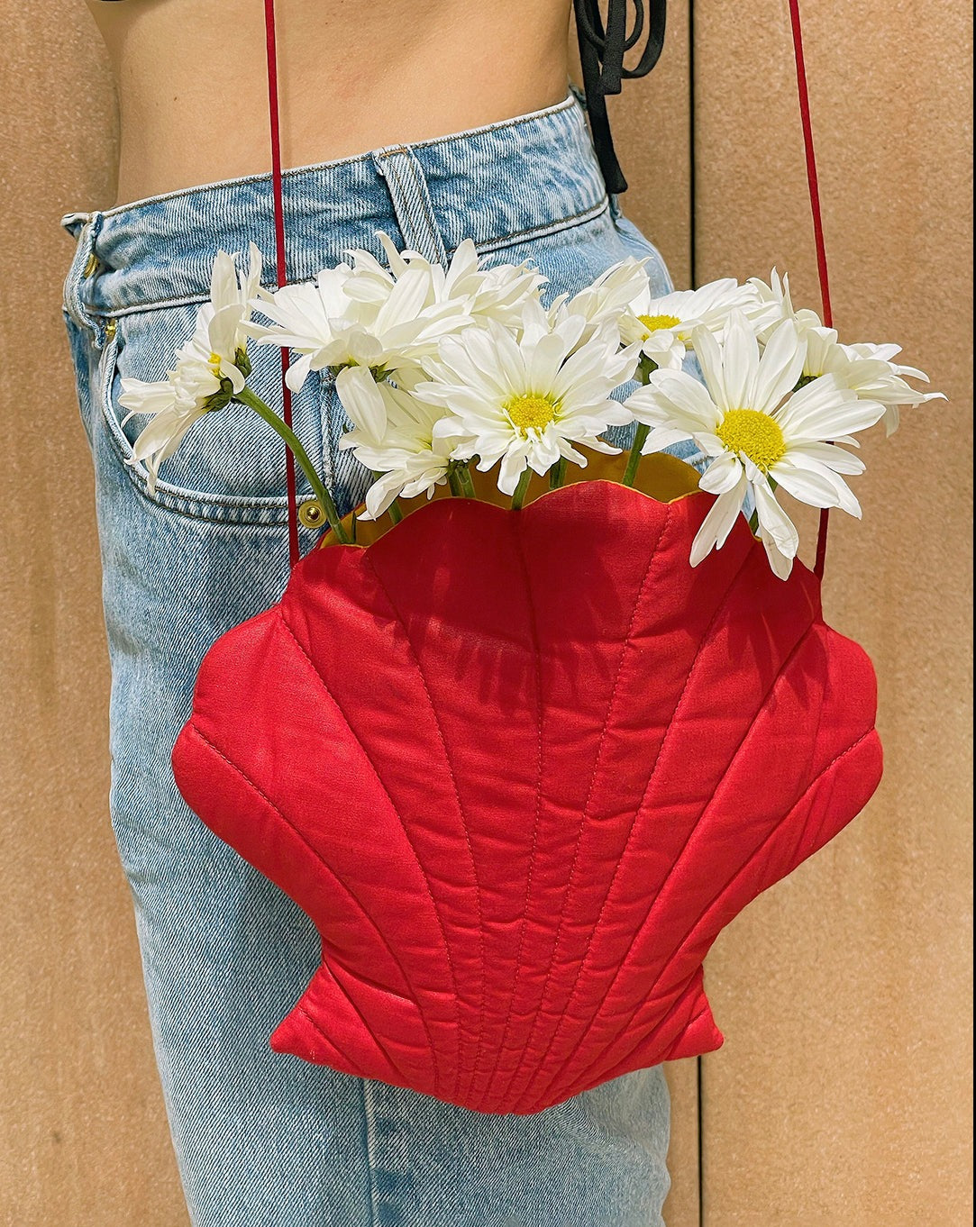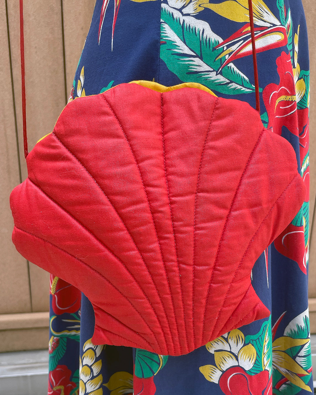 This vintage seashell purse is so sweet! I have a soft spot for anything shell-shaped, and I love that this bag is slightly quilted, with seams to emphasize the shape of a scallop shell. The bright red color is a surprisingly versatile addition to your summertime/vacation wardrobe, and I absolutely love the pop of contrasting marigold lining. It measures 9.5" at widest point x 9" tall, with a 21.5" strap drop that is long enough to be worn cross-body. The Vintage Hawaiian Floral Halter Dress pictured is also available.