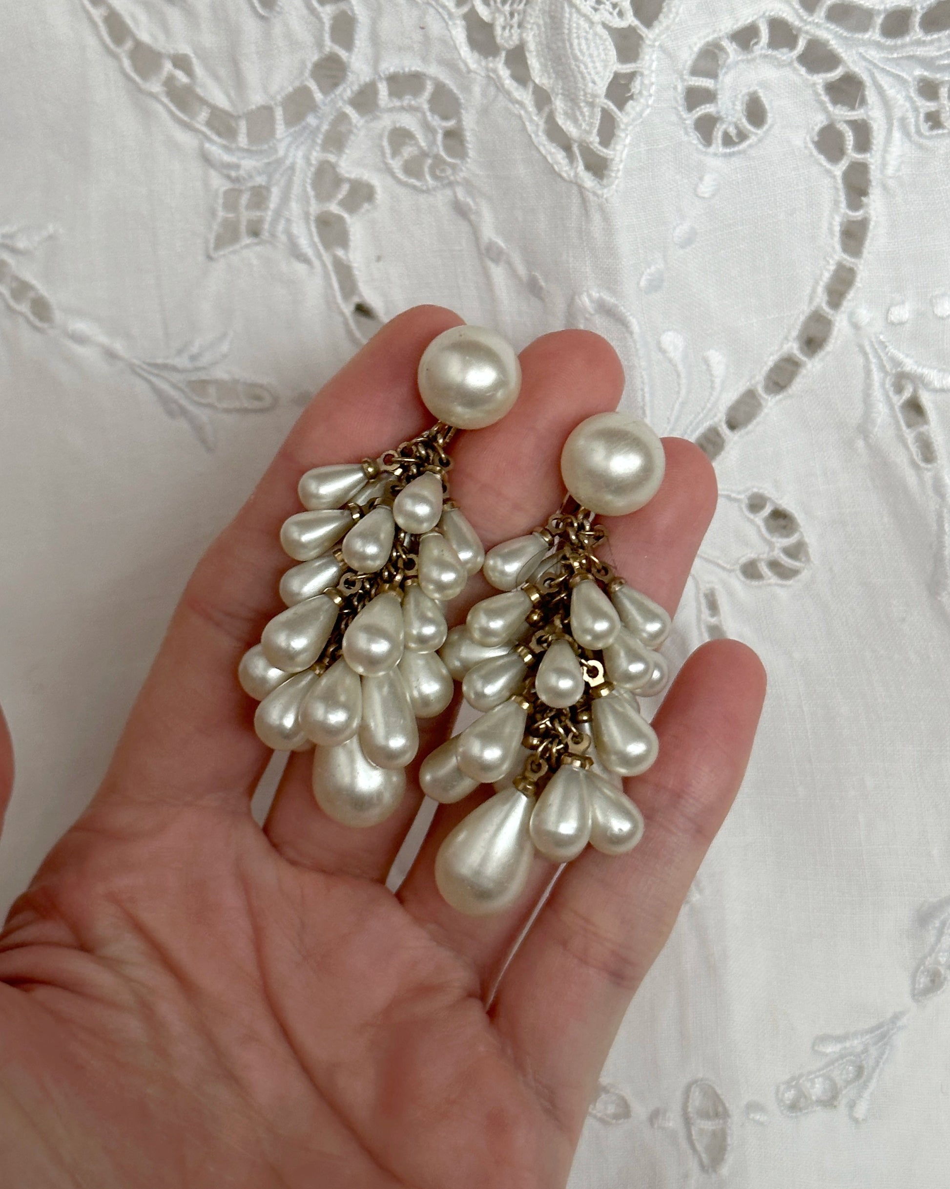 Vintage Teardrop Pearl Cascade Tassel Earrings