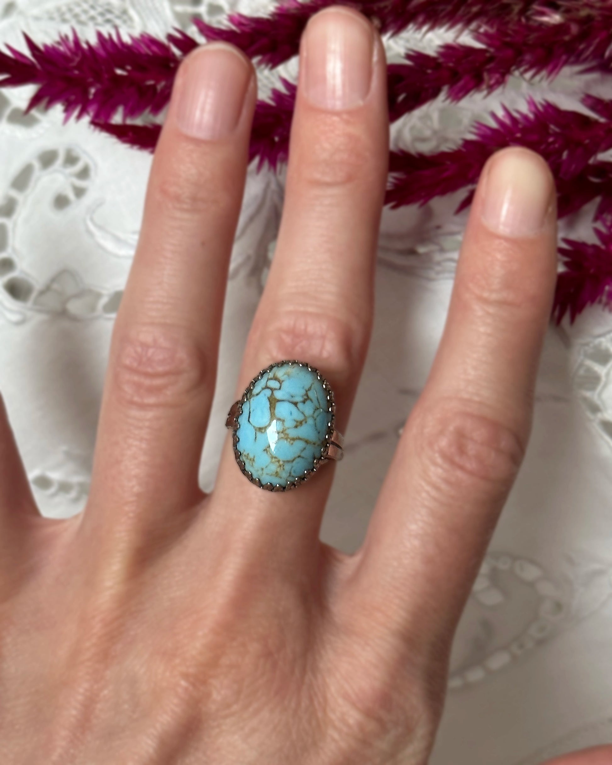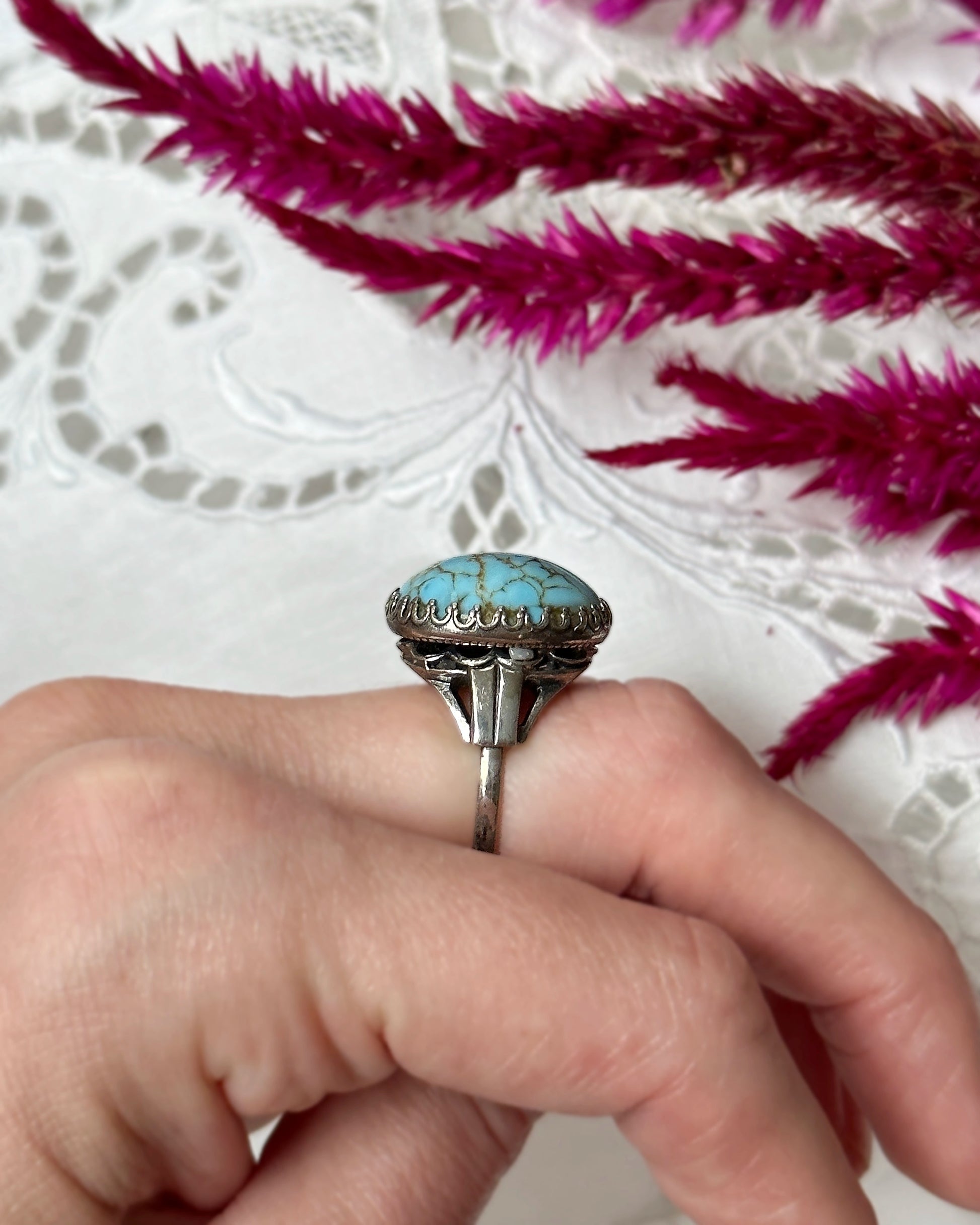 Vintage Turquoise And Sterling Silver Cocktail Ring
