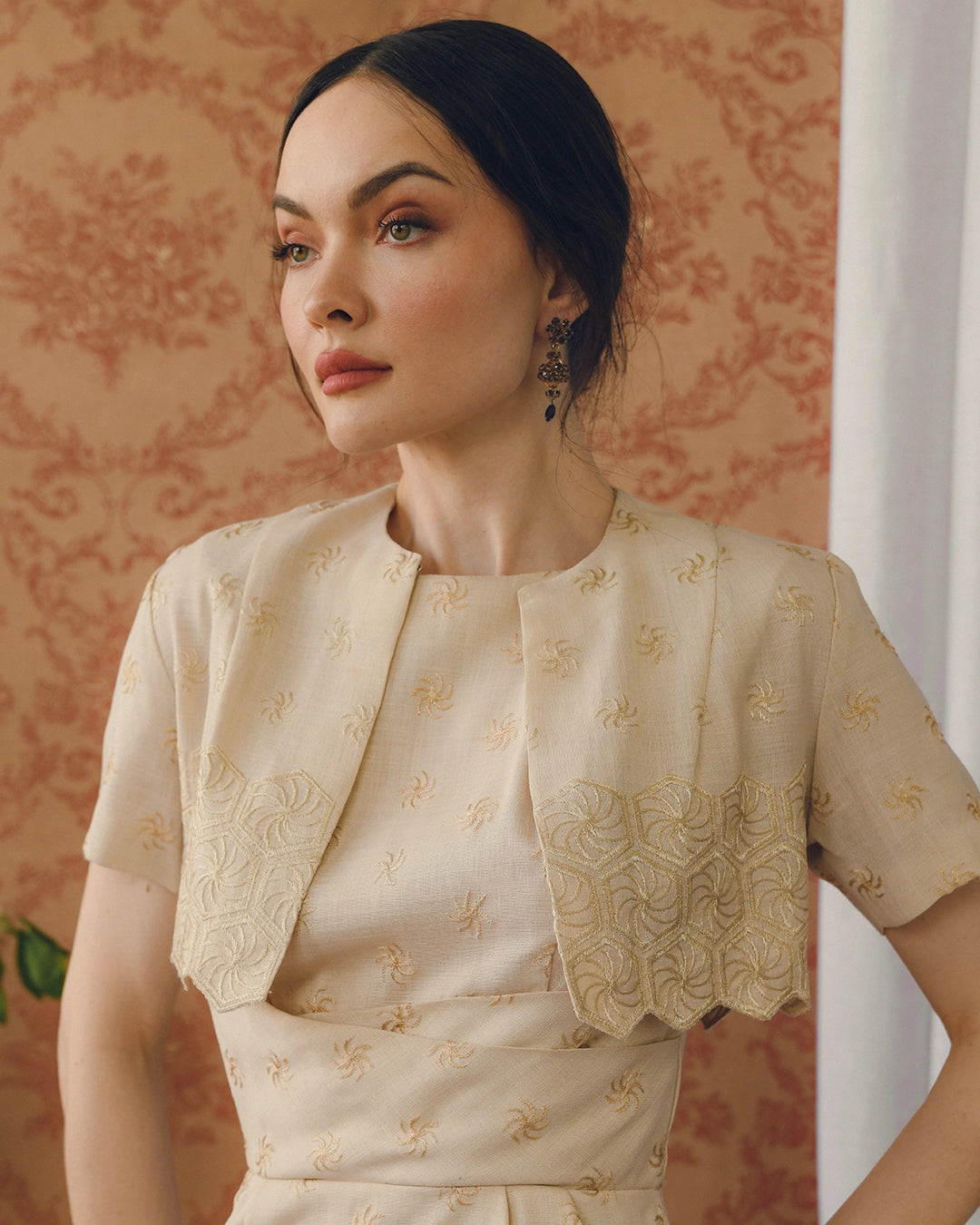 The Vintage 1960s Hand-Embroidered Wiggle Dress with Matching Bolero pictured is also available.