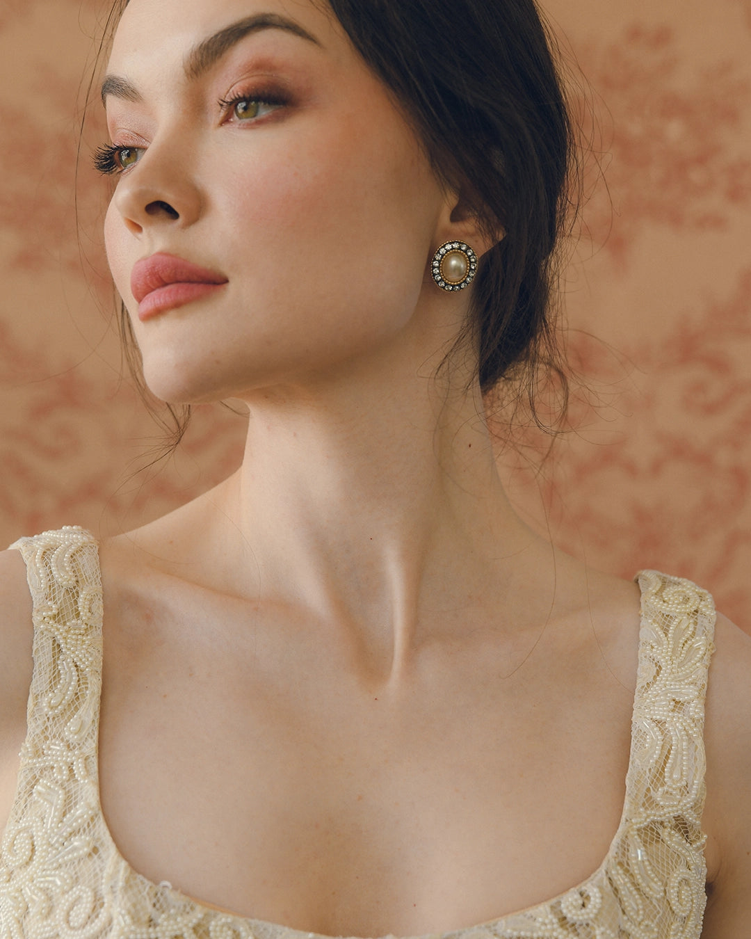 Vintage Victorian-Style Pearl Studs In A Blackened-Gold Crystal Halo