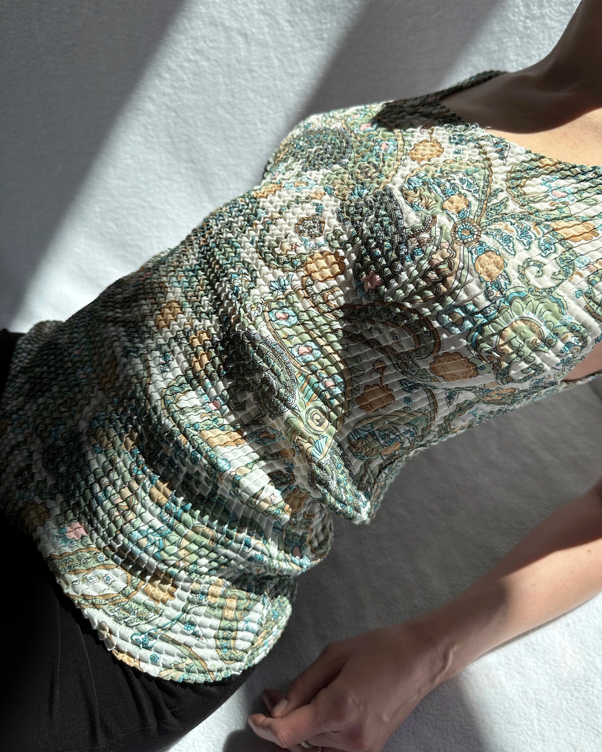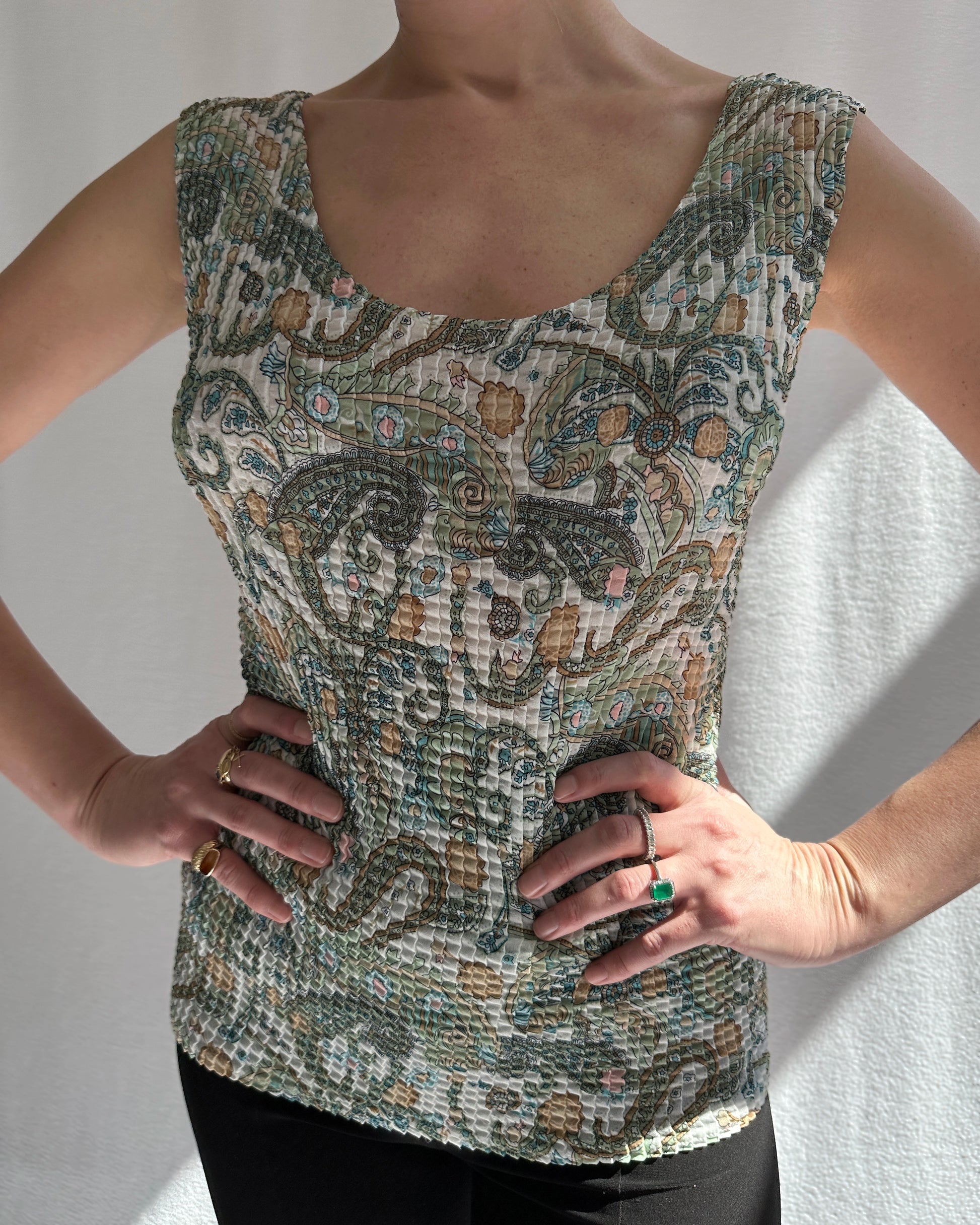 Y2K trend alert: I'm loving the resurgence of these tops that were everywhere in the late 90s/early 2000s. This one features the most gorgeous paisley print, and that super-90s semi-squared neckline. I love it layered with a vintage chain belt; a great selection of vintage-Chanel-vibes chain belts are also available.